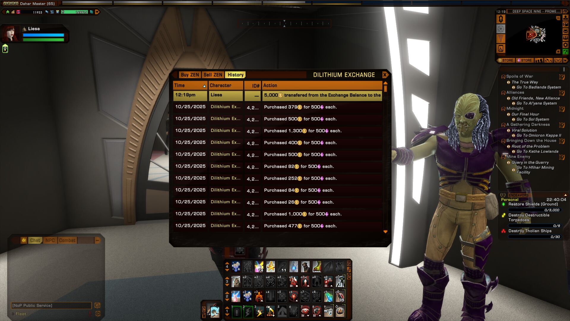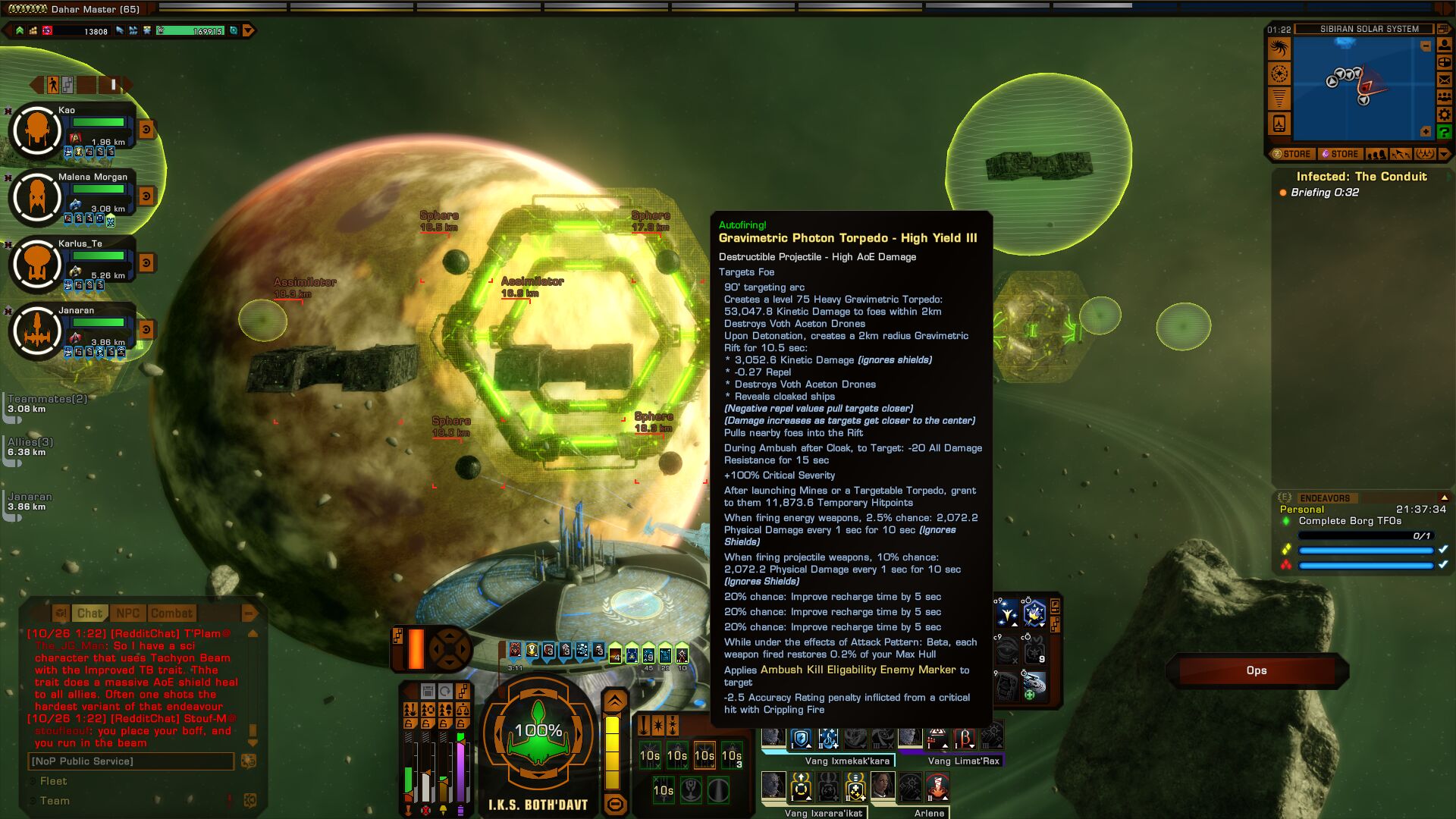 Gear = semmi, nagyon keves ground gearam van, ami mindenki szamara elerheto (a jobbak meg boundosok a fo karaktereknel), igy mindenkinel egy tholian (vagymi) gatling - valamelyik korabbi eventbol jott -, torchbear armor meg a mostani eventes shield, modulok meg a leveling kozben kapott basic tizszintenkenti reward kitek + az a mergezo bombas eventes modul, meg nem mondom a nevet, de baromira hasznos. Tarsnak sci tars, csak heal spellekkel, de passive uzemmodban vegig, hogy csak gyogyitson, ne tamadjon, ne aggrozza be es vigye el a gyertyaktol a csontikat.