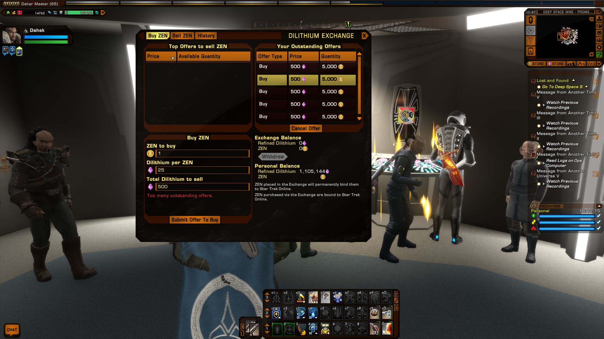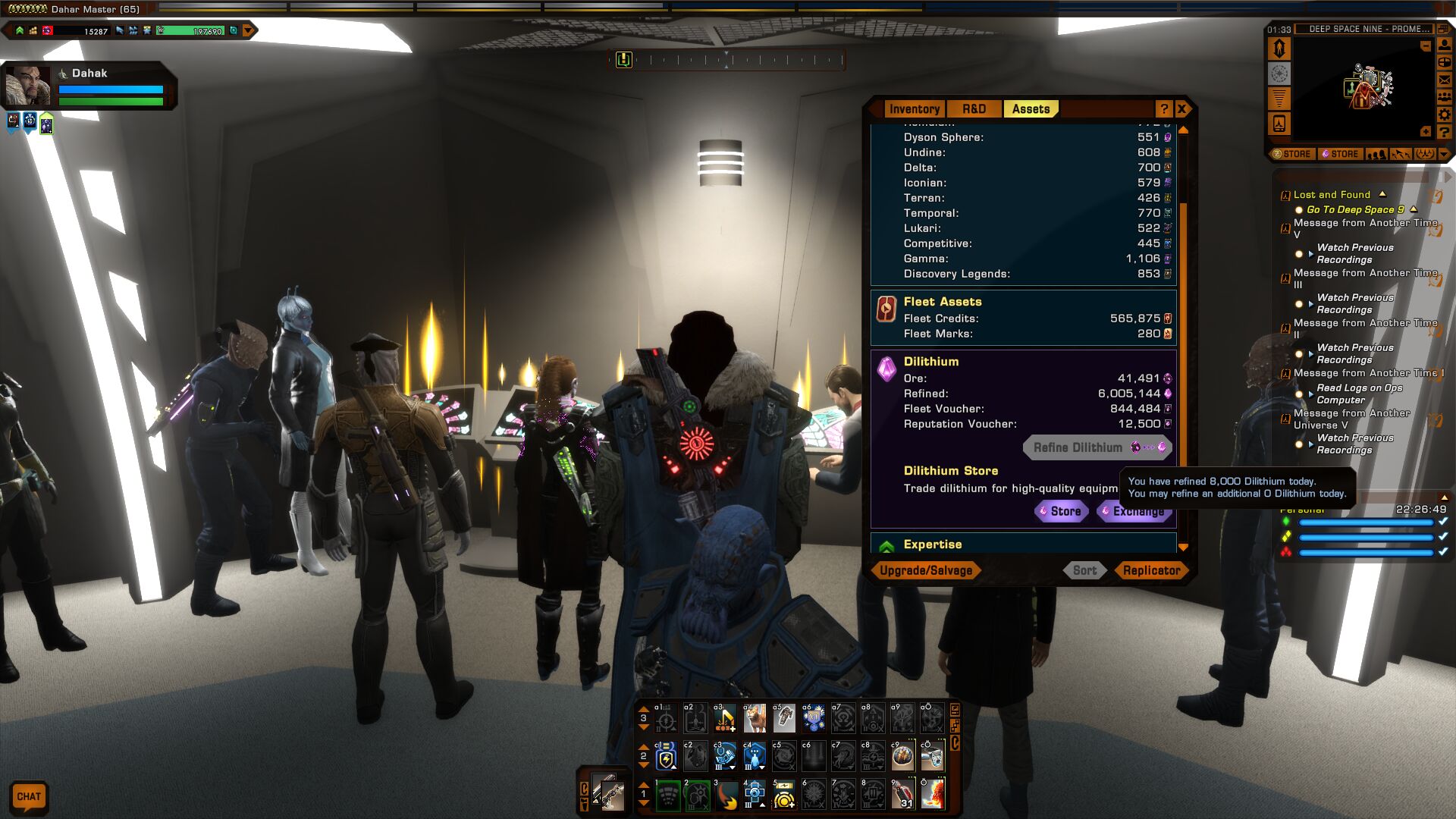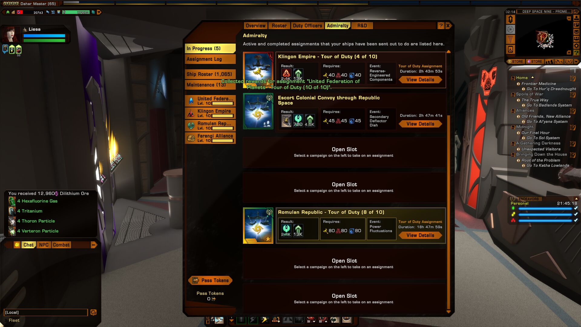 Ha van preferált karid (vagy több), akkor ki lehet maxolni superior traitekkel, full doff assignment slotok, Superior Romulan Operative boffok, meg egyéb flottás dolgok (space/ground cuccok, egyéb boffok/doffok), amiket dili-ért meg flotta kreditért lehet venni.
