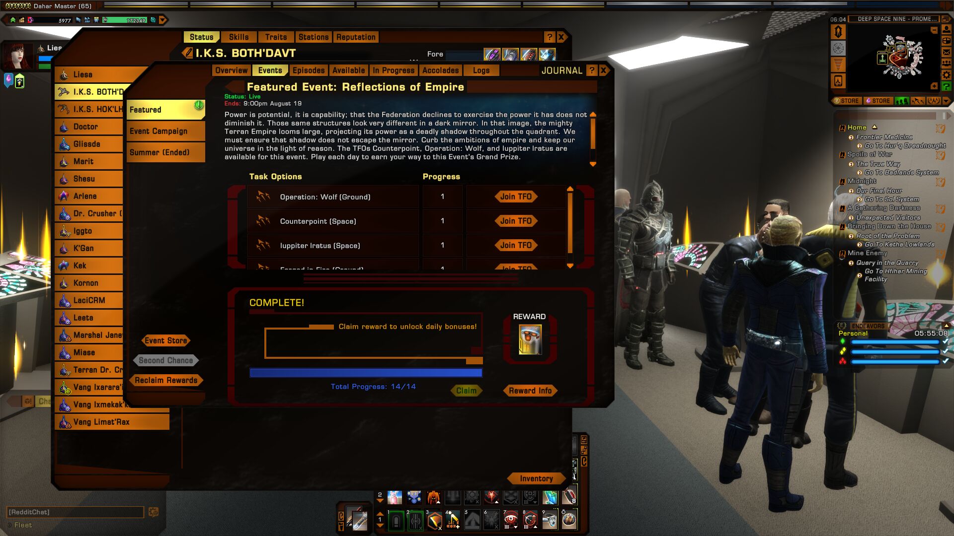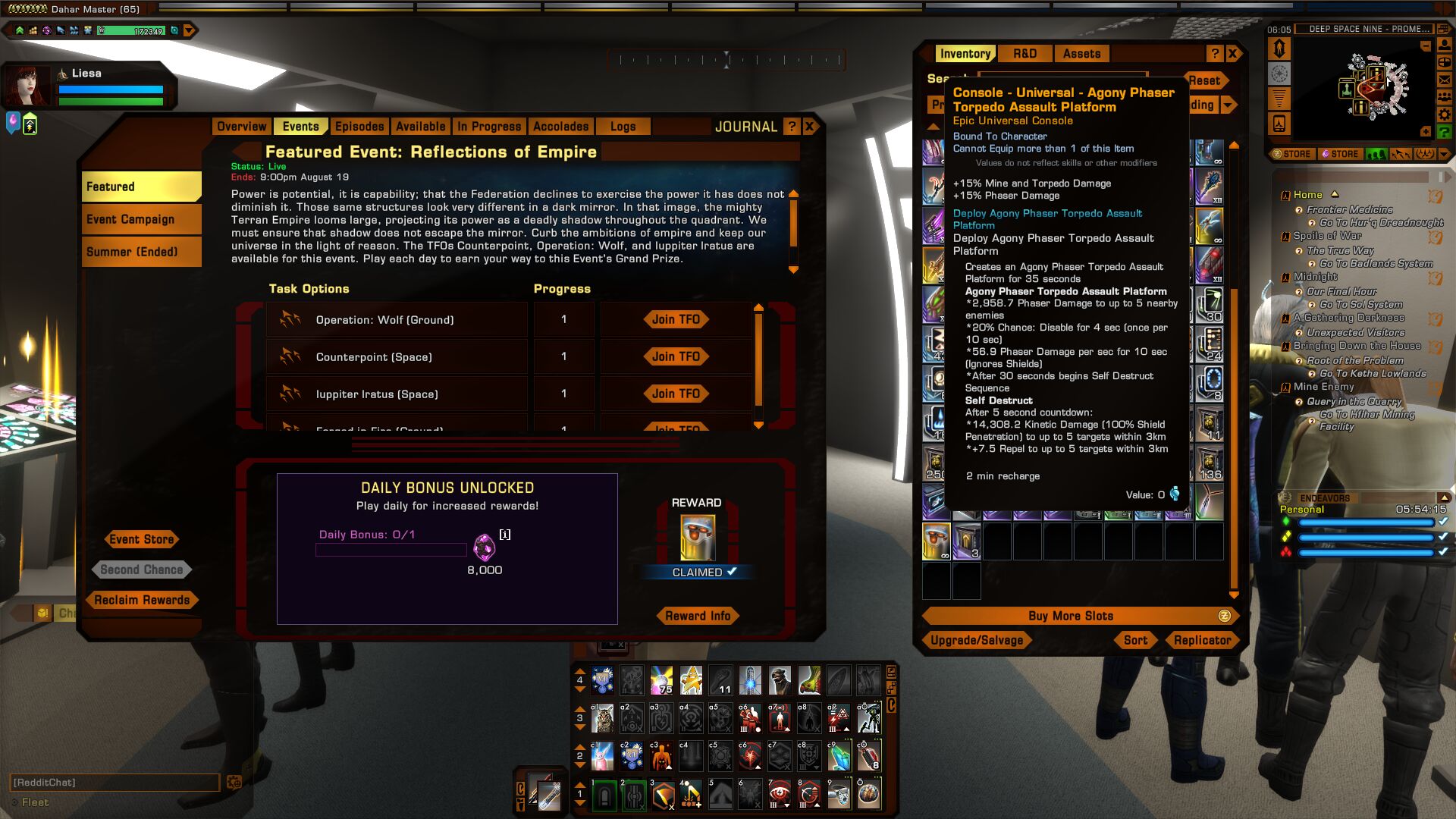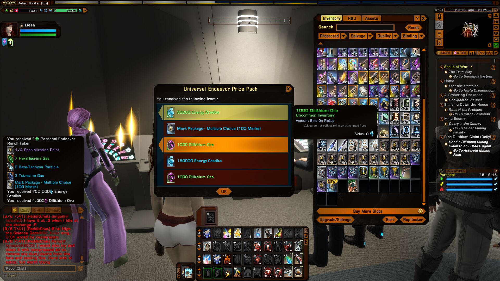 Please note: The Dilithium event does not effect rewards from the Endeavor system.