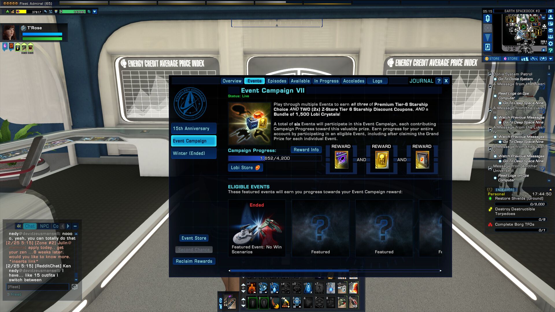 Please note: The Dilithium event does not effect rewards from the Endeavor system.