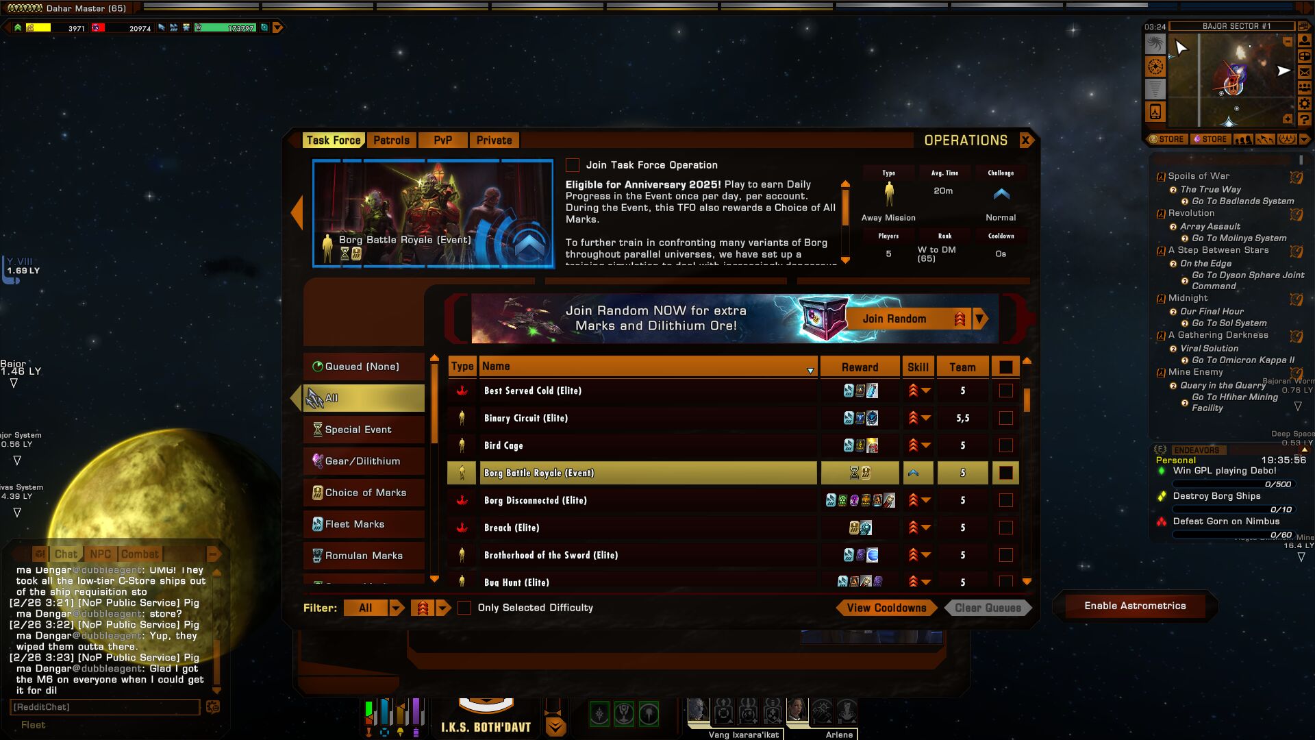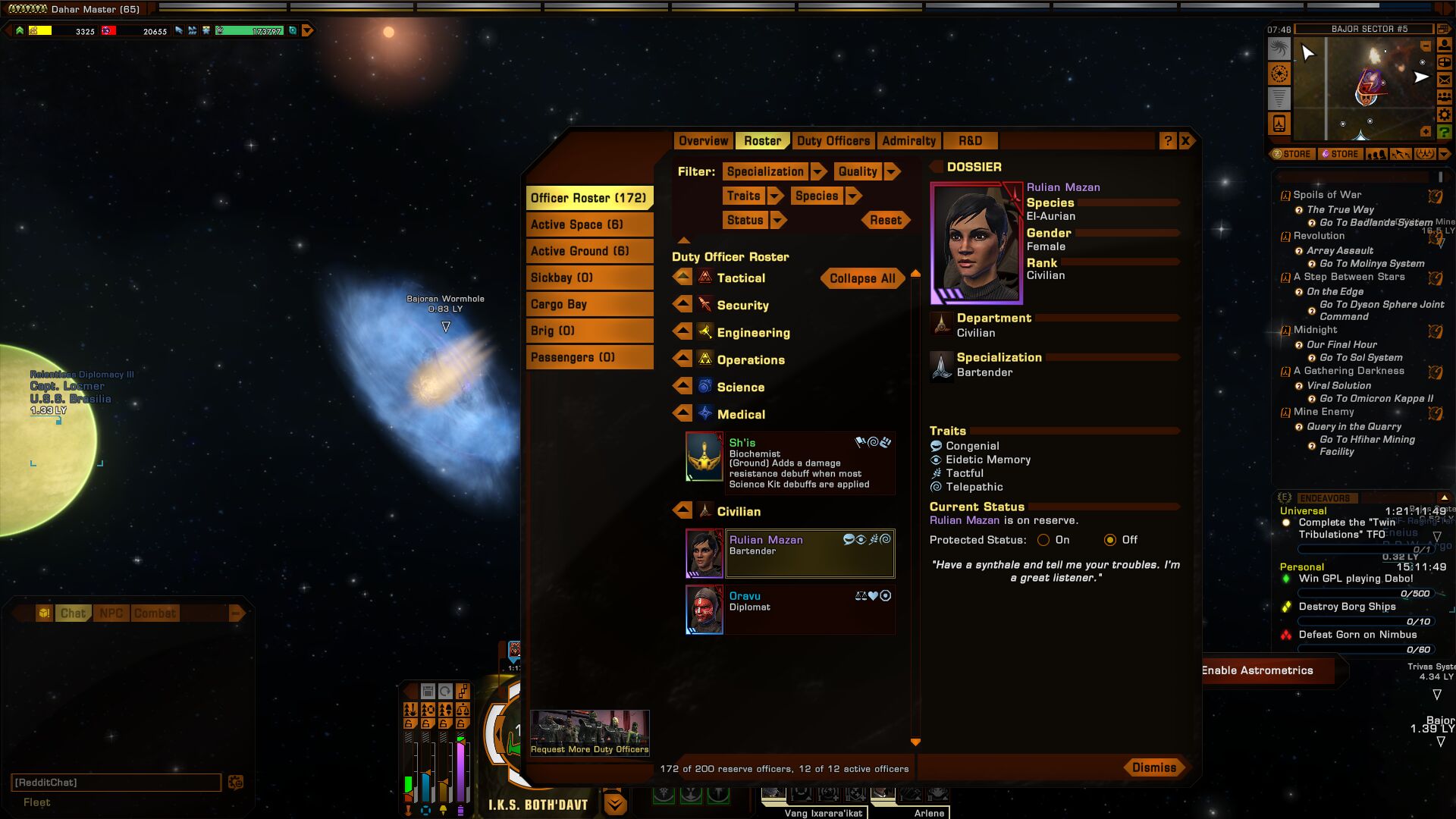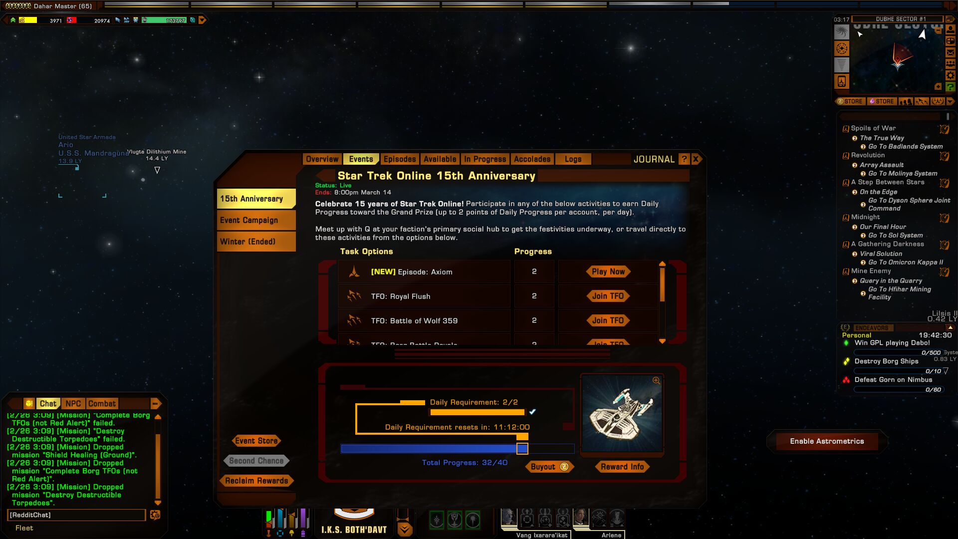 Plata #47670 Winter event előtt vadásztam el aurián bartenderre ds9 körül,de nem jött össze,ma felugrottam délelőtt játékba és csak úgy poénból megnéztem a doff küldiket,volt is pár doff szerzős.