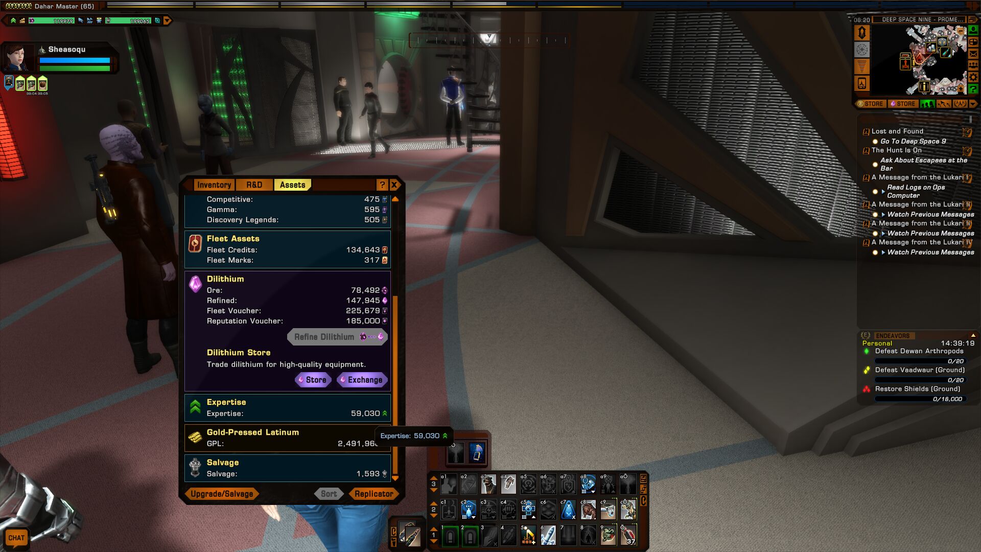 Plata #46682 Igen expertise,a szegény klingon alienemnek van 59k expertise,ami lófingra sem elég,a vulkán karimnak lassan a feléhez ér a T6 repuja és van 718k expertise-je,emlékszem hogy mikor T5 lett a repuja egyből kapott vagy 600k-t.Nem recruitos kari egyik sem.