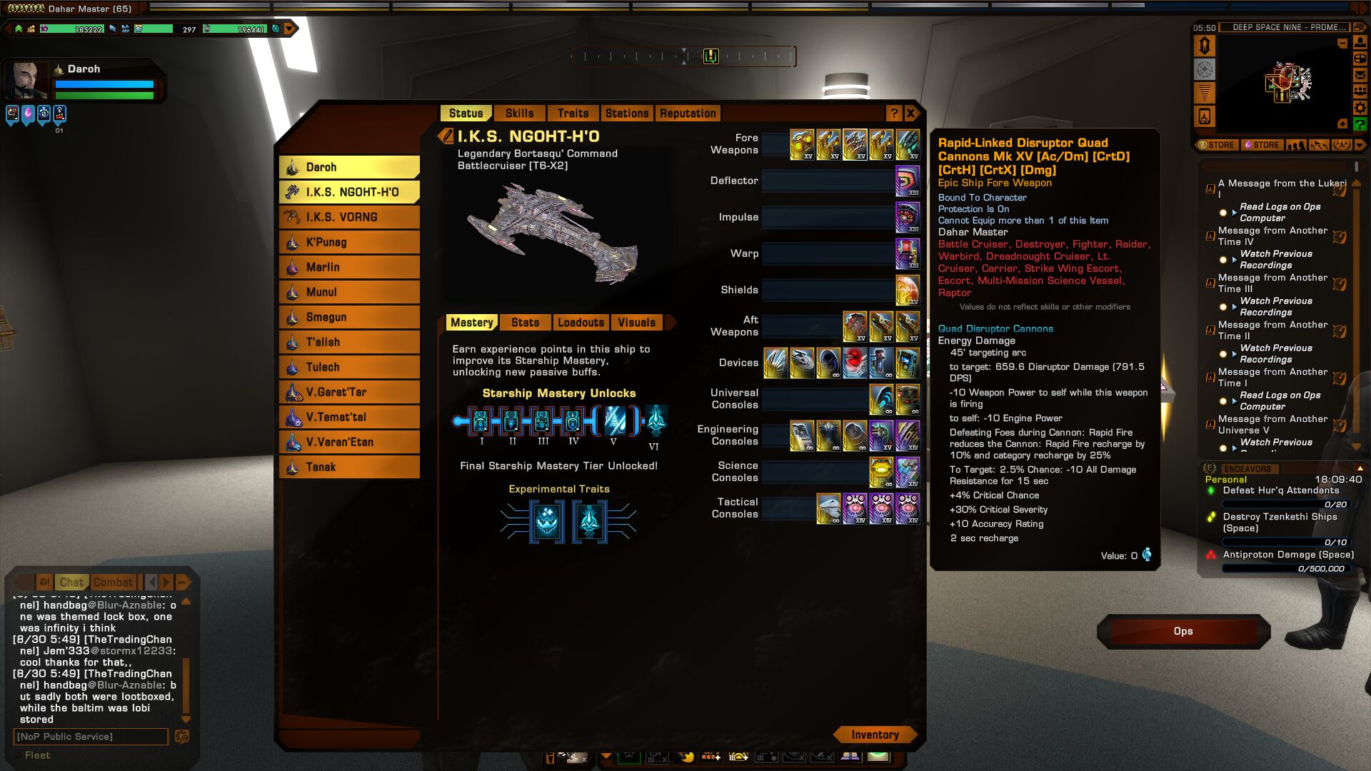 Fel vissza űrbe és irány ds9,ds9-en megint nincs bent pár traitem és a karakter fület ha megnyitom néha eltűnik a boffjaim nagyrésze.