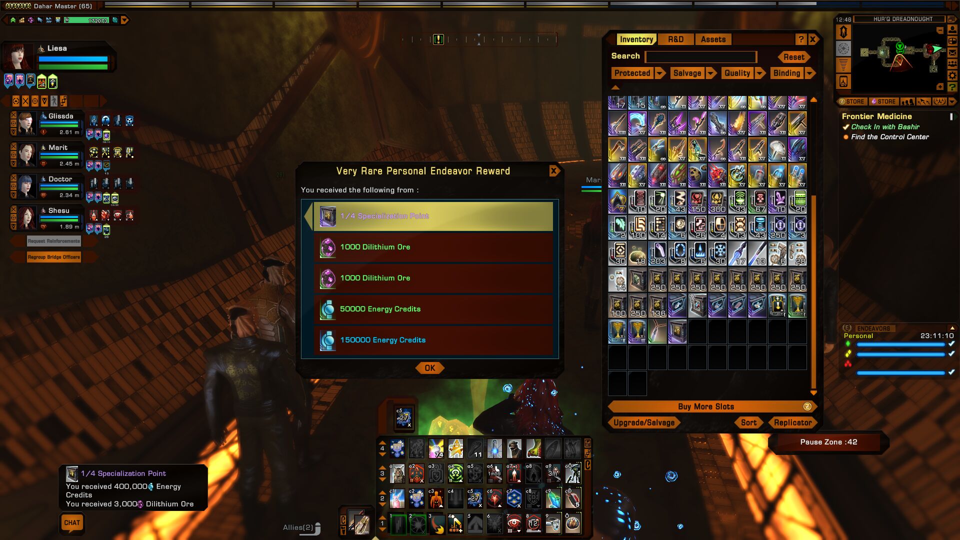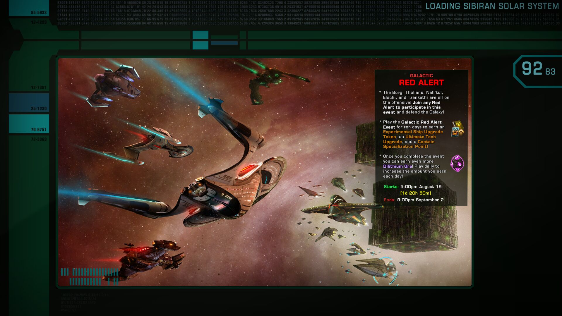 Lattam en is a loading screenen. 14 napos lesz, ship upgade, arany item upgrade lesz meg valami harmadik, boff vagy kapitany up token, arra mar nem emlekszem.