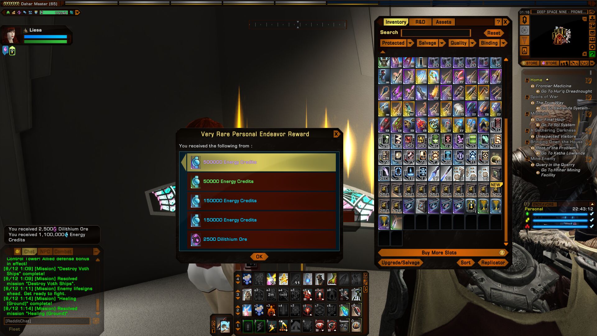 Please note: The Dilithium event does not effect rewards from the Endeavor system.