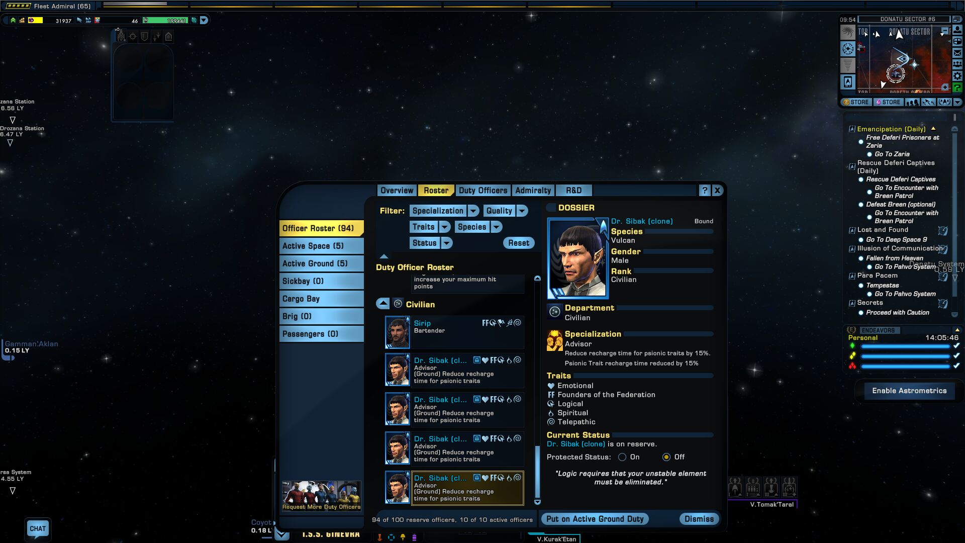 Plata #48650 Kb ötödik karival csinálom épp a péntek 13 küldit,a karim az akadémián volt,transzwarpoltam a küldihez majd le sugároztam és a traitjei meg a skillbarja üres. XD