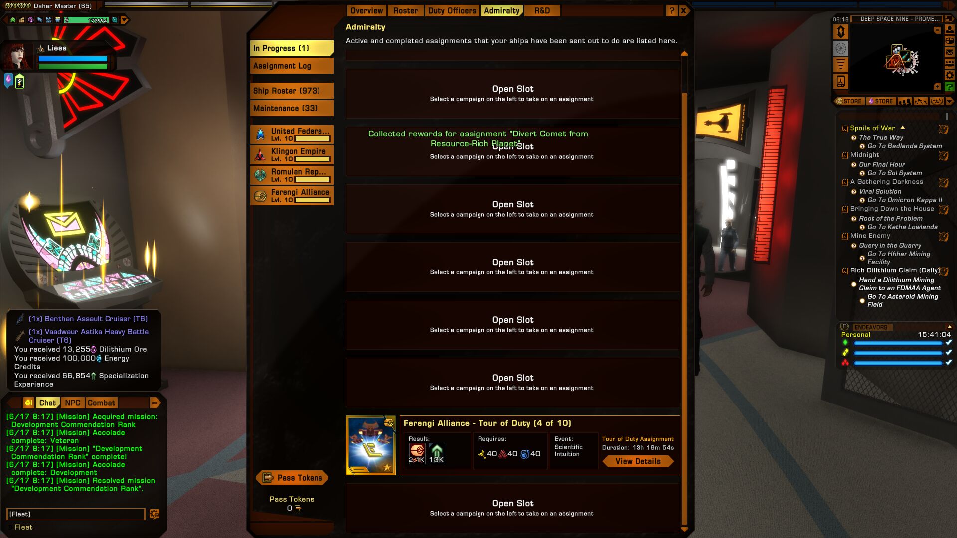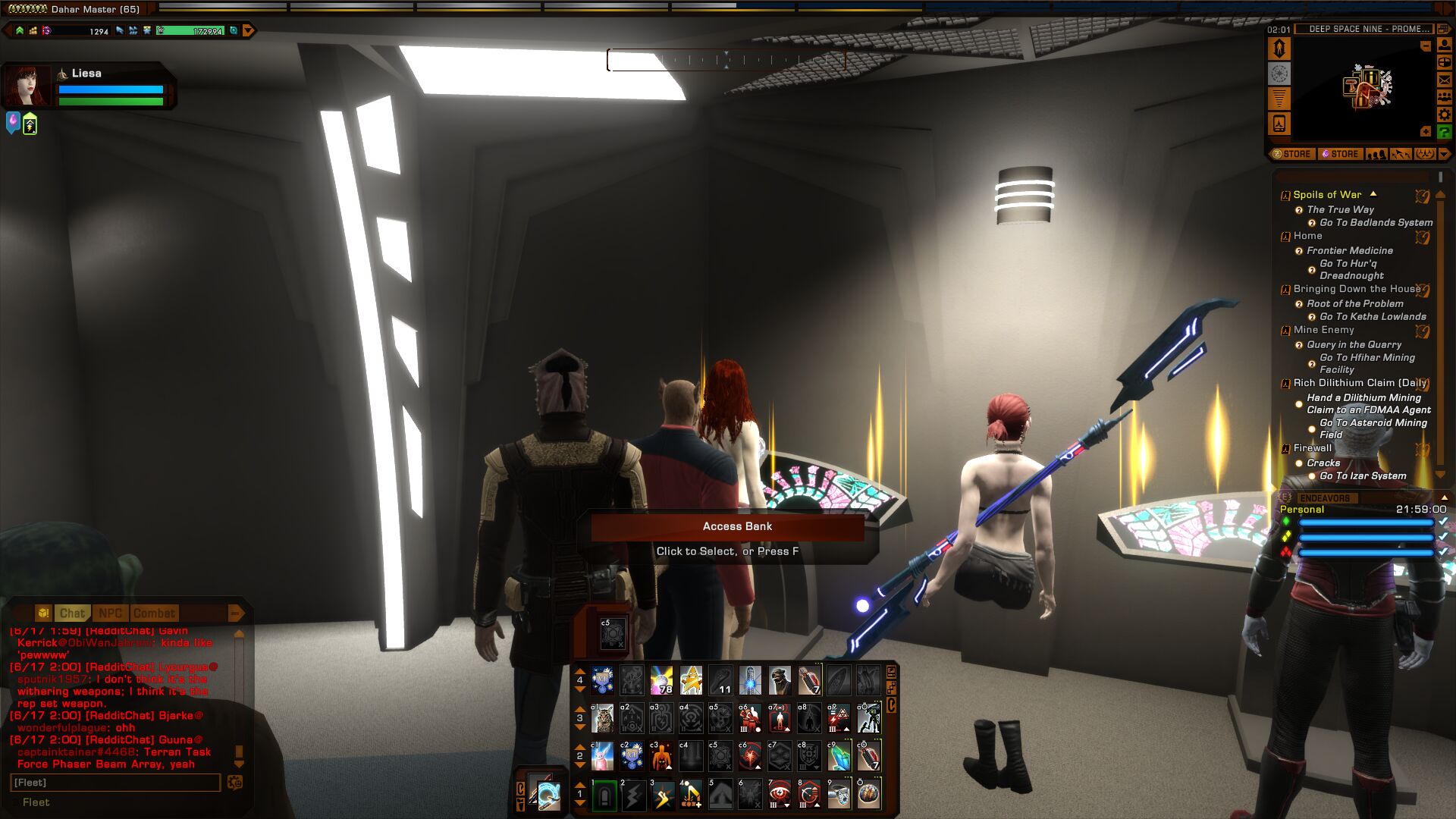 Plata #48666 DS9-en raktam be acc bankba az endeavoron kapott mark és xp ládát mikor észrevettem hogy egy lábatlan űrlény áll a közelben. :D