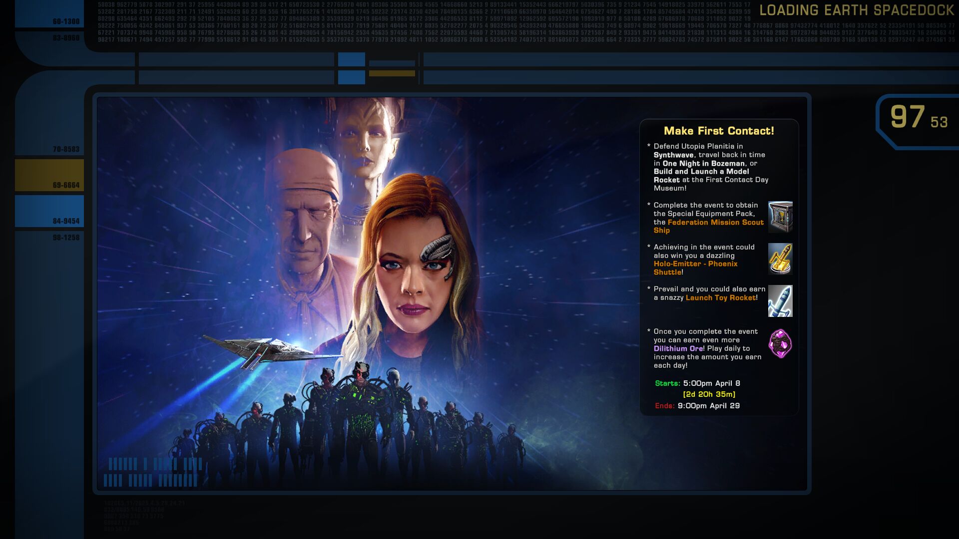 gunji #48056 Igen, a játékba betették háttérképnek töltögetés alá: április 8, 17.00-kor kezdődik, 21 napos lesz és egy Federation Mission Scout Ship lesz a nyeremény, meg a szokásosak. :) -