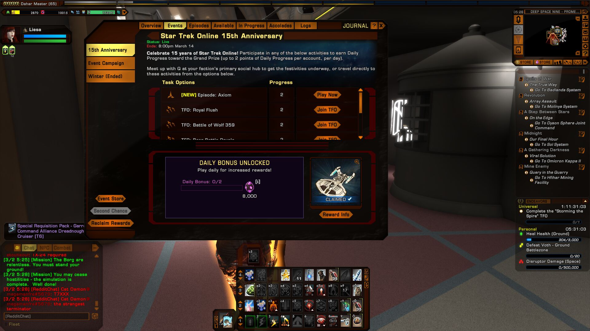 Please note: The Dilithium event does not effect rewards from the Endeavor system.