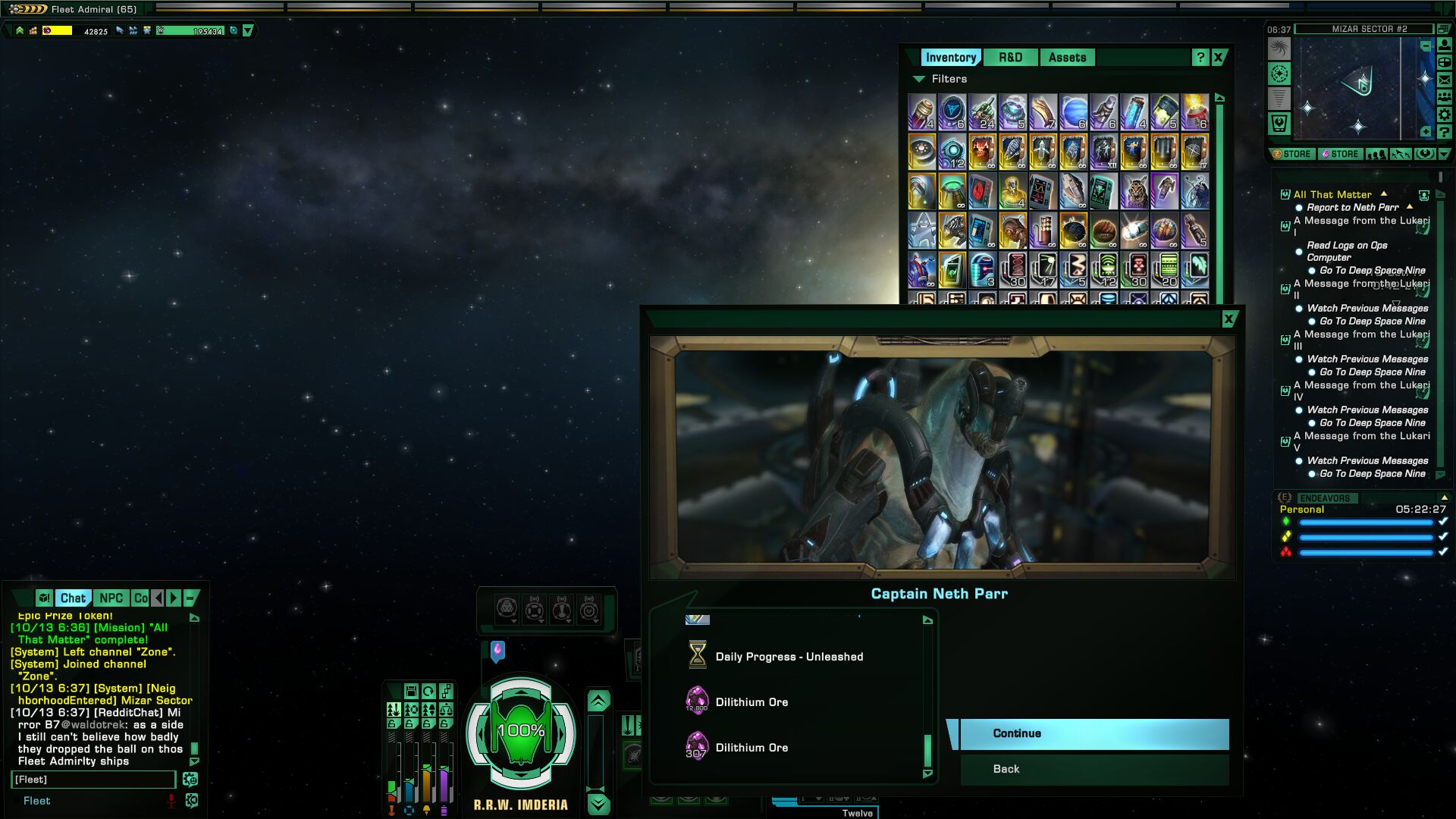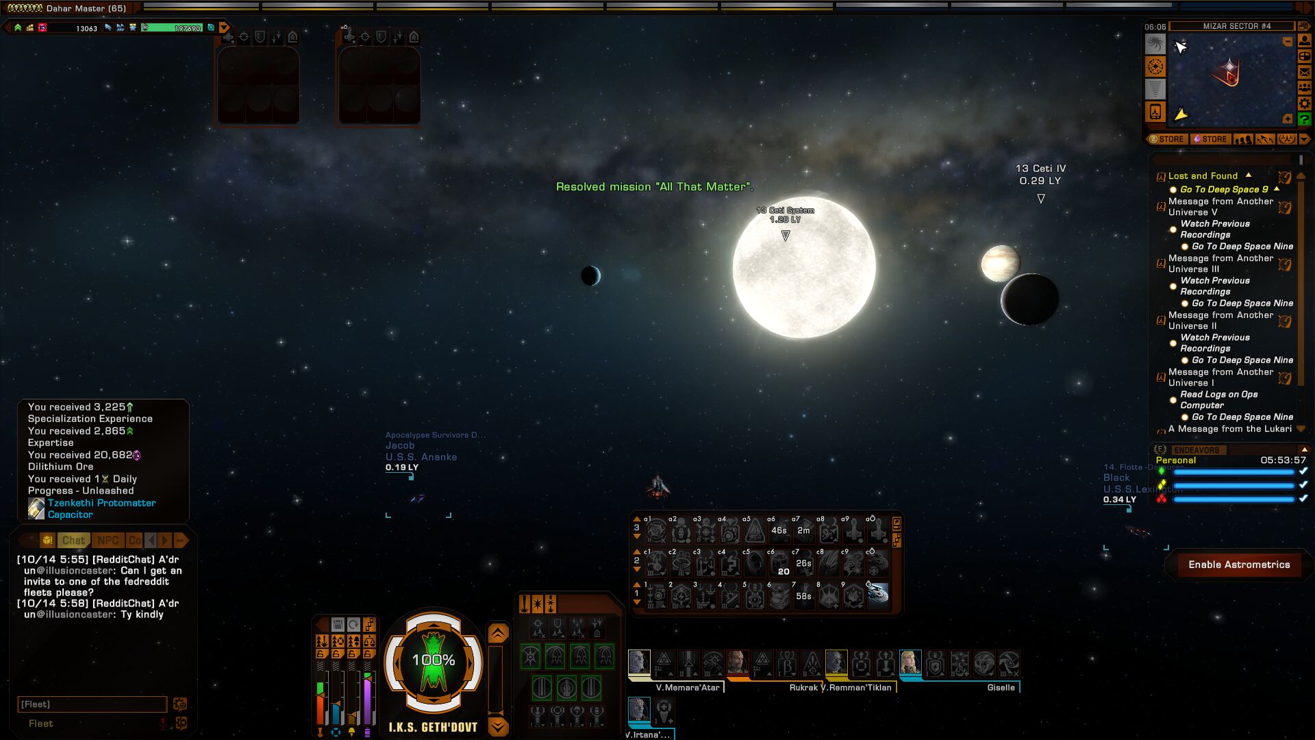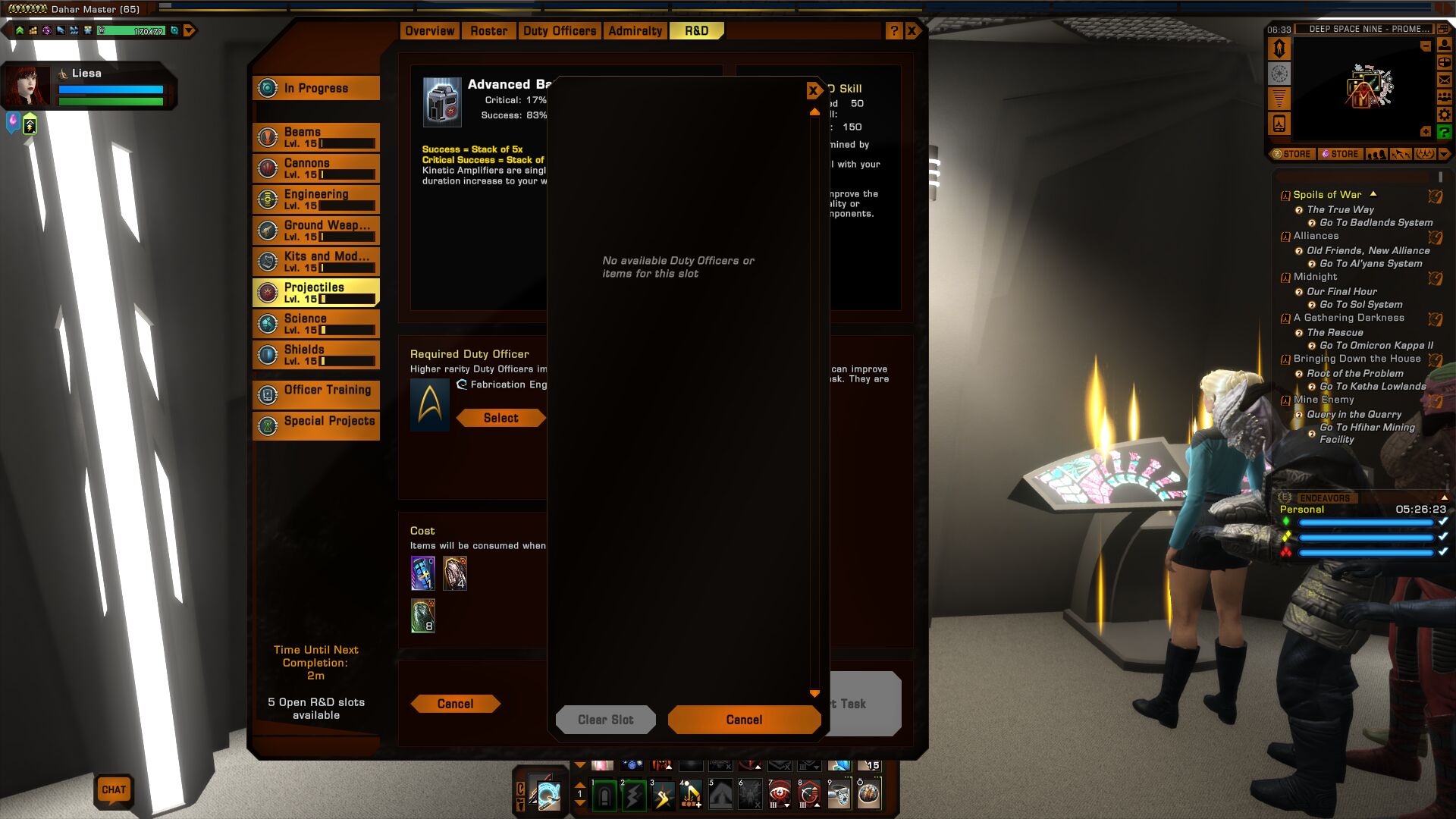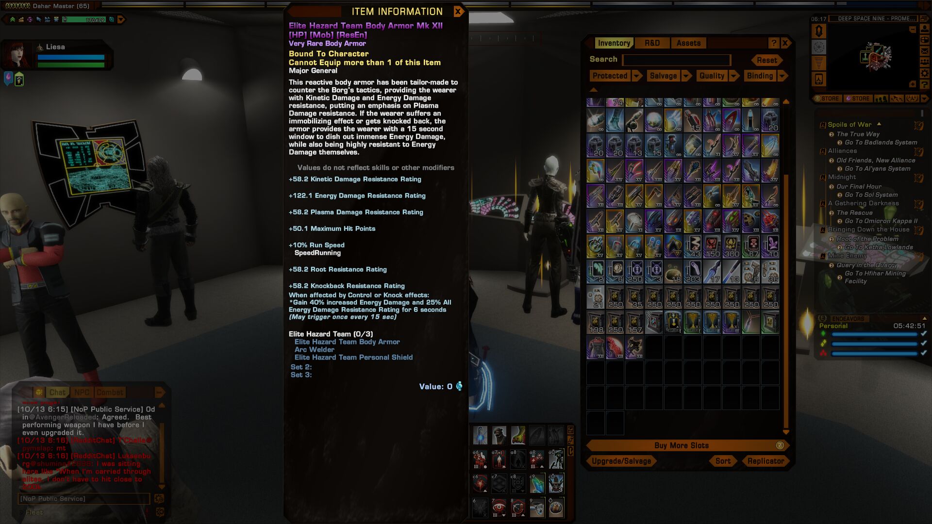 DS9-en kereskedek, ha kell, ha nem, mert tőzsdén nagyon húzós árakon kínálják a csak a DS9-en beszerezhető terményeket, amik több küldetéslánchoz is kellenek, mint kellékek/fogyóeszközök és ezekhez bedobál minden doff-ot, amit ehhez hasznosabbnak talál a kereskedőkön kívül is.