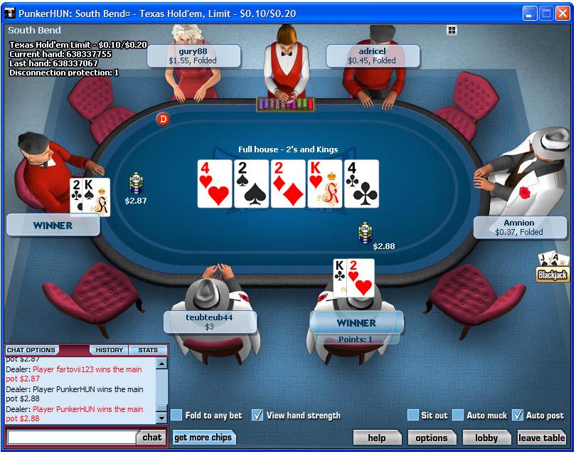 Látom szintet léptél, mert az eddigi képeiden 0.02/0.04 volt a vak.Egyébként én is ezen a szinten játszom már jó ideje csak nagyon ritkán megyek fel 0.25/0.50-re...:) -