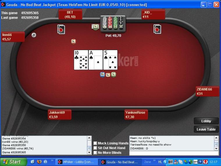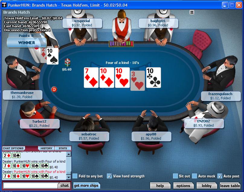 Na ma jól indult a napom!4 euroval ültem be egy asztalhoz és 32-vel száltam ki!Kétszer kaptam QQ-t és egyszer AA-t kézbe és mindegyik kitartott a végig sőt az AA-ból full lett, a QQ-ból riverre pedig set ráadásul az ellenfélnek K párja volt úgyhogy nagy mákom volt!:DDD
