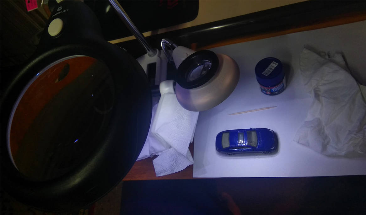~ Közben fejlesztettem a modellautó festésre is, ez az Mercedes restaurálás annyiban volt nehezebb a többinél hogy a lámpái teljesen lekoptak és úgy kellett helyretenni hogy hasonlítson az eredetihez és szimmetrikus is legyen. Ez a nagyítós forrasztóállvány nagyon jó ilyenre is mert dupla ledsoros lámpás és duplanagyítós, egy ami kell majd ezekhez a nagyon aprólékos formai festésekhez és az egy normális munkalámpa. A másik olyan erős fényű hogy kisüti a szememet... XD