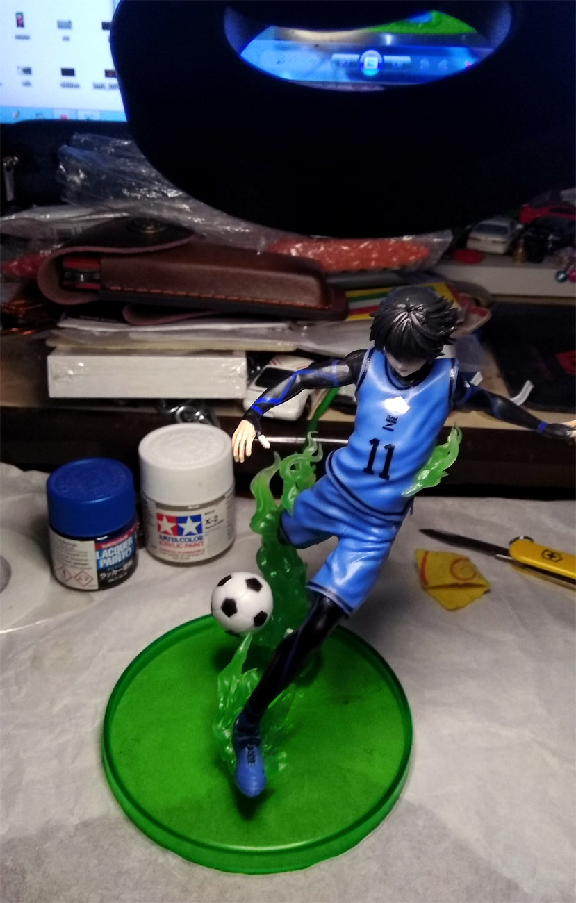 ~Volt már idén szuper bonyolult, de ez az anime figura festés és végleges formakidolgozás megint emelt picit, és ha új és apró kis munkalámpa: most nagyon jól jött. Ugye 3 különböző színárnyalatot tud, így minden eszköznél és technikánál a legjobb fényerőt és színt állítottam be és ami nagyon nehéz volt az a festékek csillogása kontúr tisztításnál, vagyis a festés az egész gyors, nagyító nélkül, a felület véglegesítés és csiszolás is penge vele, néha kellett oda is nagyítós, de ami a legnehezebb volt az az utólagos festék körvonal kontúrozás. És miért? Nem szabad csillognia a felületnek mert elveszik a formaérzékelés :D Ha minden igaz főiskolai kupa szintű lesz belőle, vagyis a logó rajta tartalmazza majd az egyetemet. Hát ha már minimálisan lennebb került a szám akkor ki kellett tölteni valamivel a helyet. Így lesz "Házkupa" az egyik csatárnak, mert a fogó az bizony én vagyok... XD