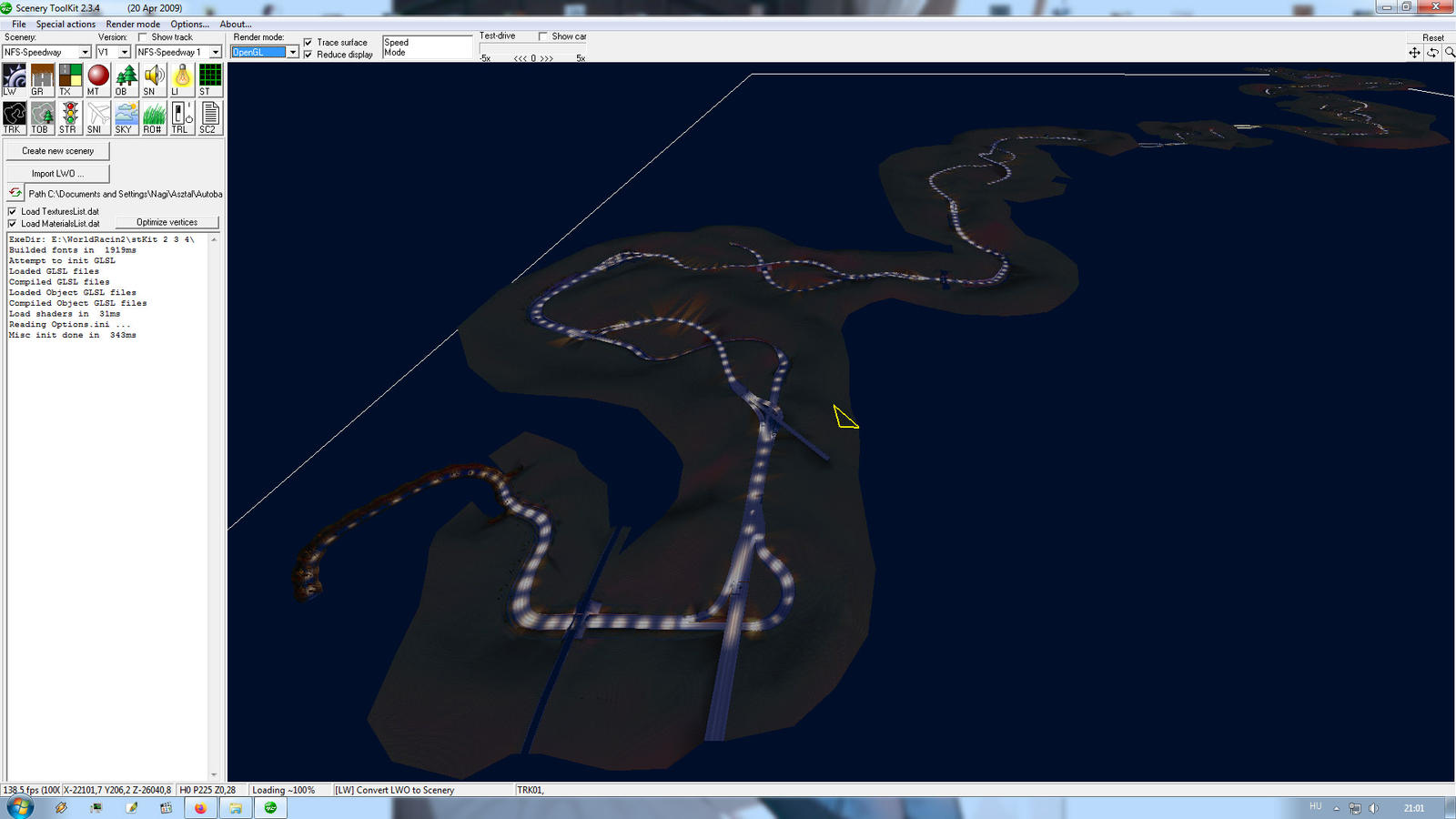 Van egy álom ami nem elérhető, viszont van egy pálya ami nem hosszú. Ha a játékprogramozó Krom is meg Adamraga is azt mondta nem fog menni: első dolgom volt elkezdeni. Hogy áll neki valaki aki megvalósítaná és minimálisan tud arról mik a korlátok? Hát felméri melyik akadály az ami vékonyka. És mi volt a megoldás? A méretproblémára vagyis hogy túl nagy Kilométerszám a rombuszban való elhelyezés volt a jó megoldás, a tükrözhetőség és a poligon blokkolás és kifagyásra a dimenzió-potméterrel játszottam, de szó szerint, vagyis kifagy ha nagyobb, kifagy ha kisebb, de a közepes vagyis a két dimenzió közt stabilan fut: akkor nyertem :D És igen, a dimenzió és méretarány realisztikus nálunk, NFS-ben bolhaautók mentek a kifutópályán és lötyögött a sávokban a sportkocsi, nem mintha tartották volna amcsi barátaink a sávot, ugye forgalom nemigen volt, na itt aztán minden gigantikus csúcsforgalom számban sávot tart ám, és így sikerült a lehetetlen ^^