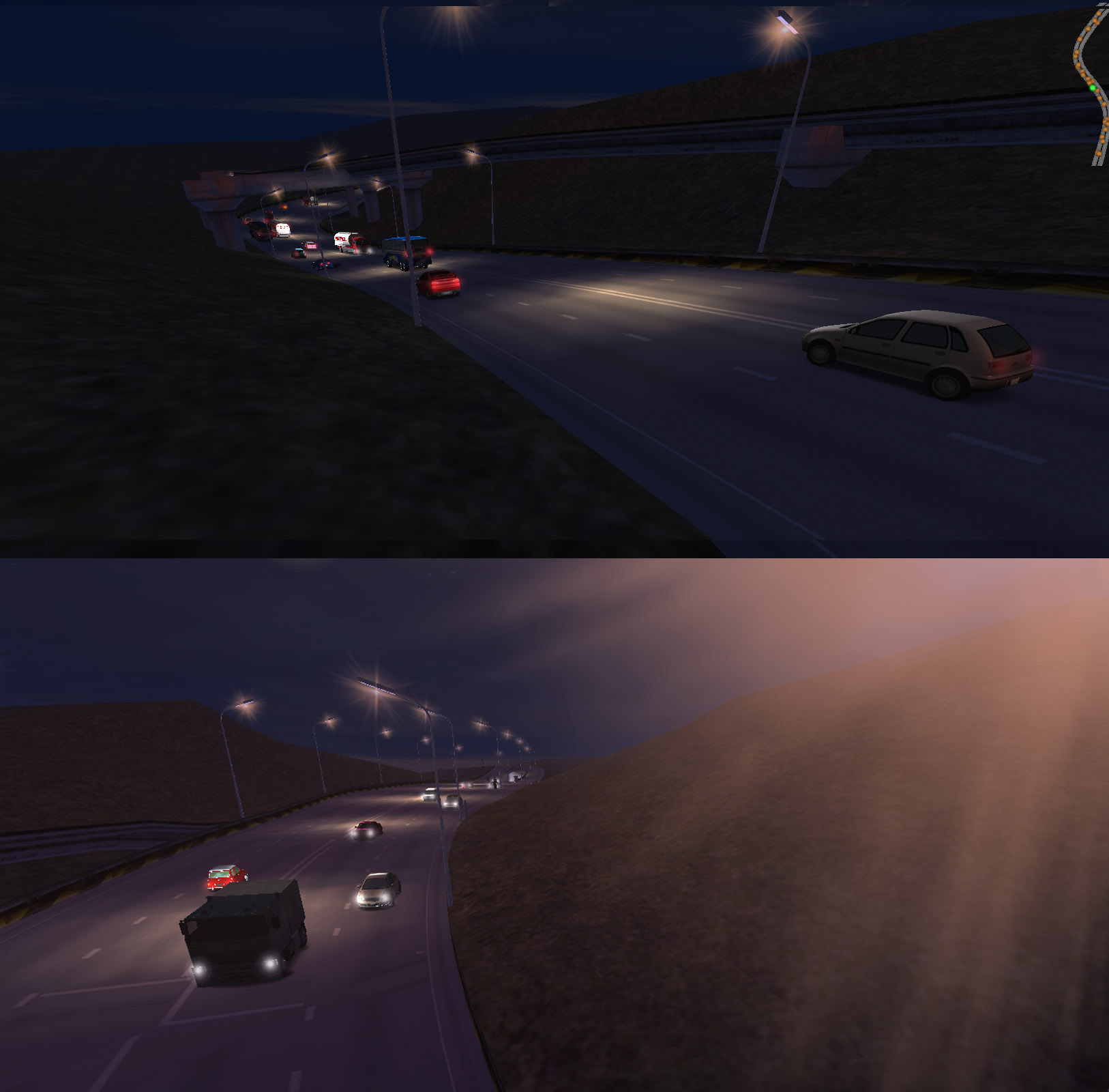 Bár csak jövőre, vagyis 2026 karácsonyára ígértem Norbinak a LAN-parti kompatibilis kész állapotot a japán autópálya projektre, de nagyon úgy tűnik idén már elérem a max szintet annyira ráálltam a témára :) És ami érdekessége a mi játékunknak hogy a Need for Speed eredetihez képest itt az alacsony forgalom az ottani csúcsforgalom 10-szerese, és a csúcsforgalmi autómennyiség meg már értelmezhetetlen amcsi játék szempontból és nem is a fordított irány miatt hanem a kocsik tömött sorokban mennek mint valami féklámpa füzér és nem fagy ki a játék.