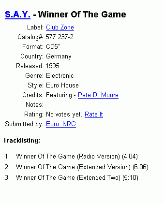 Say Feat. Pete D. Moore - Winner Of The Game (4:03) (1995)