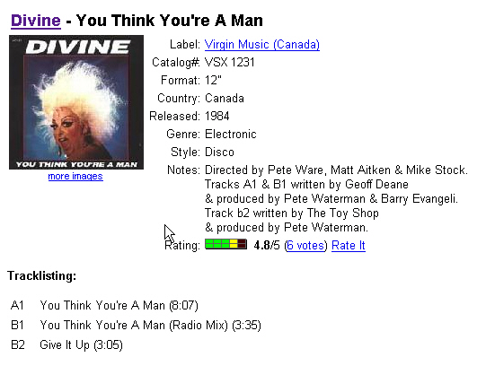 Azaz, magyarul: a Dead or Alive producere - Pete Waterman - benne volt a Divine-dologban. [A Stock-Aitken-Waterman triumvirátus később még szerzett néhány számot a DoA-nak.]
