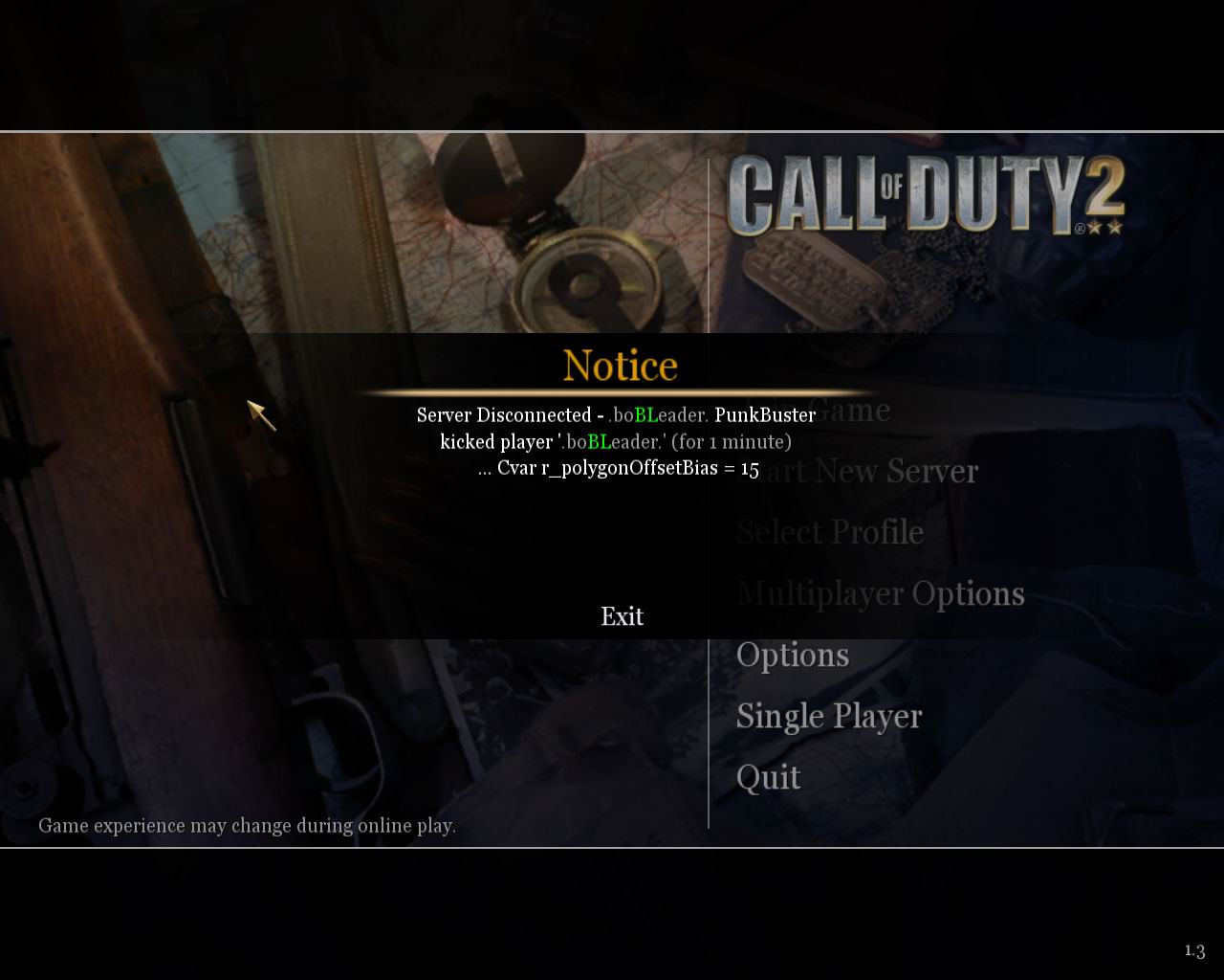 sziasztok! egy olyan kerdesem lenne, hogy tegnap este eljutottam oda hogy ujratelepitsem a cod2-t. Igen am de amikor a v1.3 patchet felrakom akkor egy "version mismatch" hibaval kilep.. Vistam van de eddig mukodott tehat nemtudom milyen problemaja lehet.