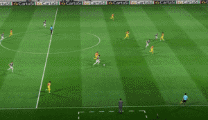 igen a wide kamerának egy hibája van, hogy a hosszanti oldali szögletnél a bent helyezkedők egy része nem látszódik a rúgás pillanatában