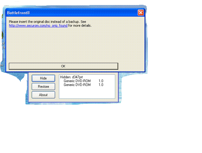 Nem tudom felrakni a Bfront2-t. Igen tudom, vannak módszereke amiket lentebb találok. Pipálgattam a Registry-ben, és átírtam a az exe-ket is. Letöltöttem a Hide-programot is(amit mondjuk nem tudtam használni) és mindezek elleneére nem jó, holott nagyon hamar, a szerverre való felrakástól számított 1 óra múlva töltöttem is. Felraktam, nem volt semmi gond. De elindítani...Dél ta minent kipróbáltam és nem jó. Ha valaki, egyben, minden lehetséges alternatívát leírna, egy hozzászóllsában, azt nagyon megköszönném. Jelenleg amúgy ez a hibaüzenet az aktuális:Conflict with Disc Emulator Software detected