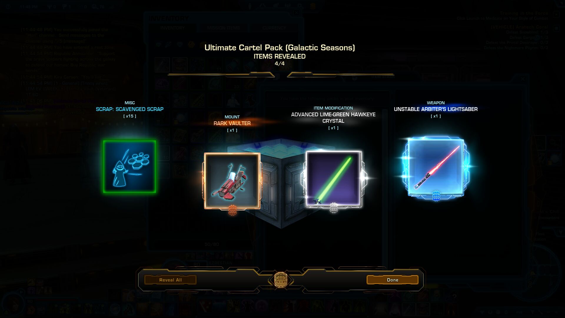 Plata #60605 Nem tudom,jártam a Hoth-on meg mentem random FP-t,tele lett a táskám szeméttel elmentem a flottán vendorhoz és akkor vettem észre hogy régi season vacak is van a táskában. -