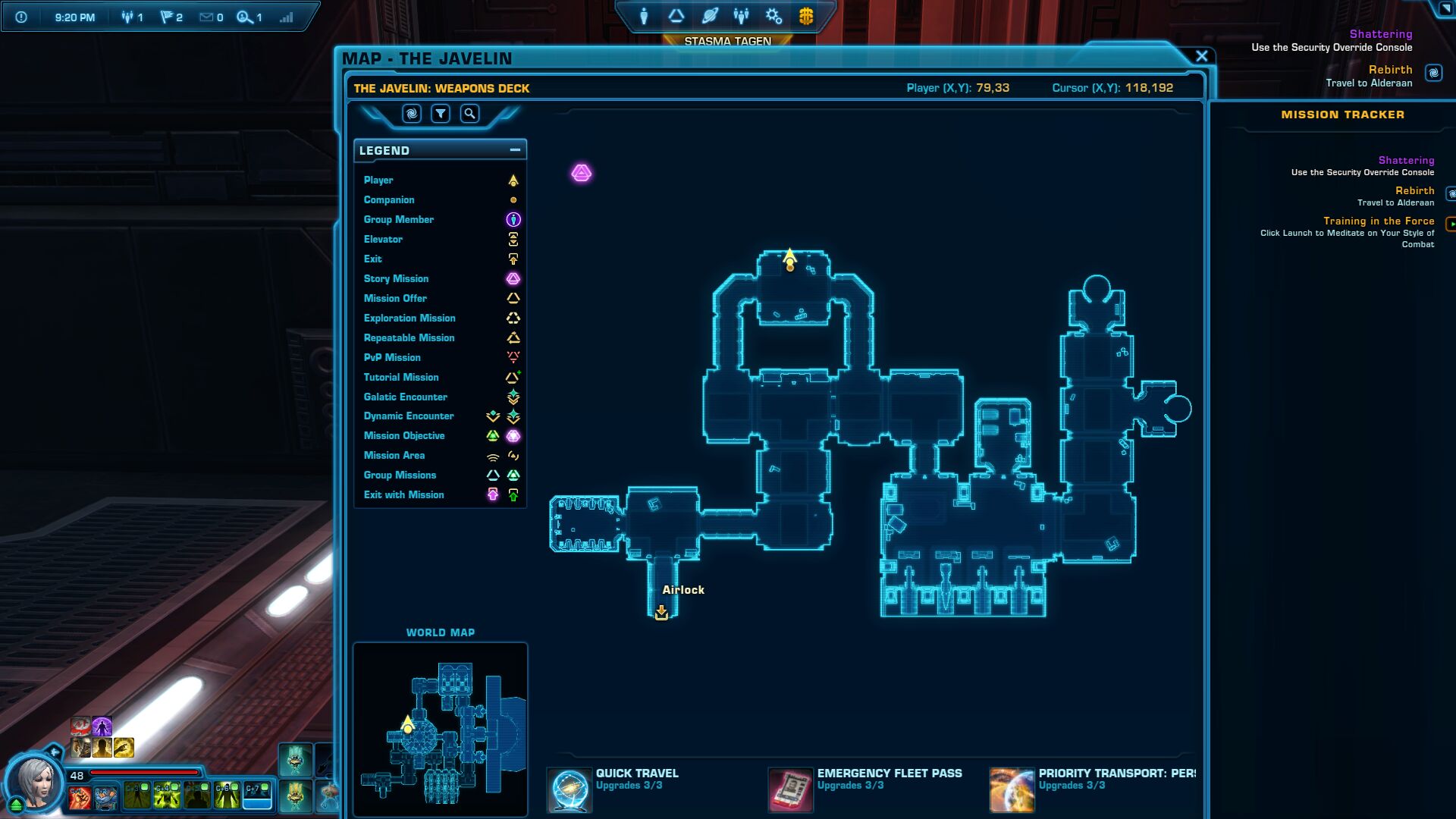 [Leaving Korriban] Mapnotes are now present on the map to guide Sith Warrior characters to their next location when they are inside the Sith Academy.