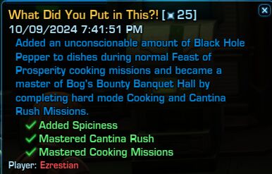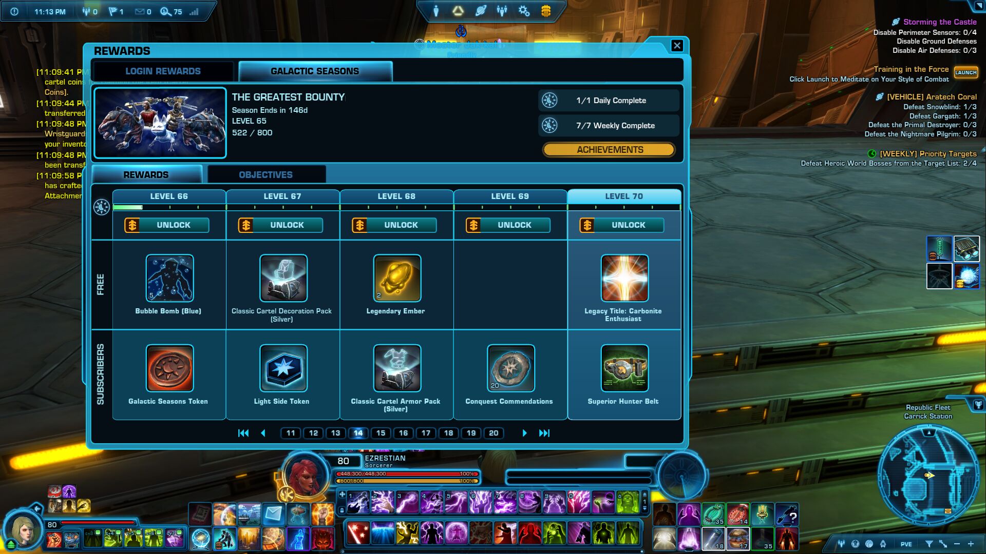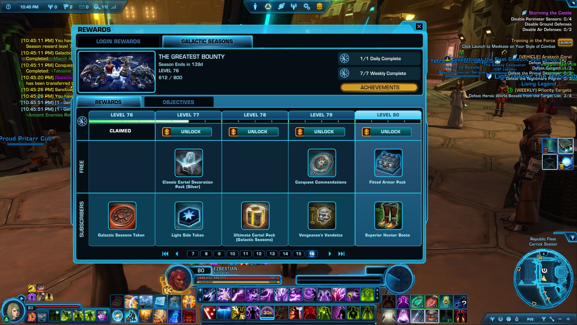 Game Update 7.5.1 “The Greatest Bounty” launched on August 20 and contains Galactic Seasons 7, the Vette and Aric Jorgan Date Night Missions, a plethora of Cartel Market offerings, and we kick started the beginning of our Twitch Drops campaign.
