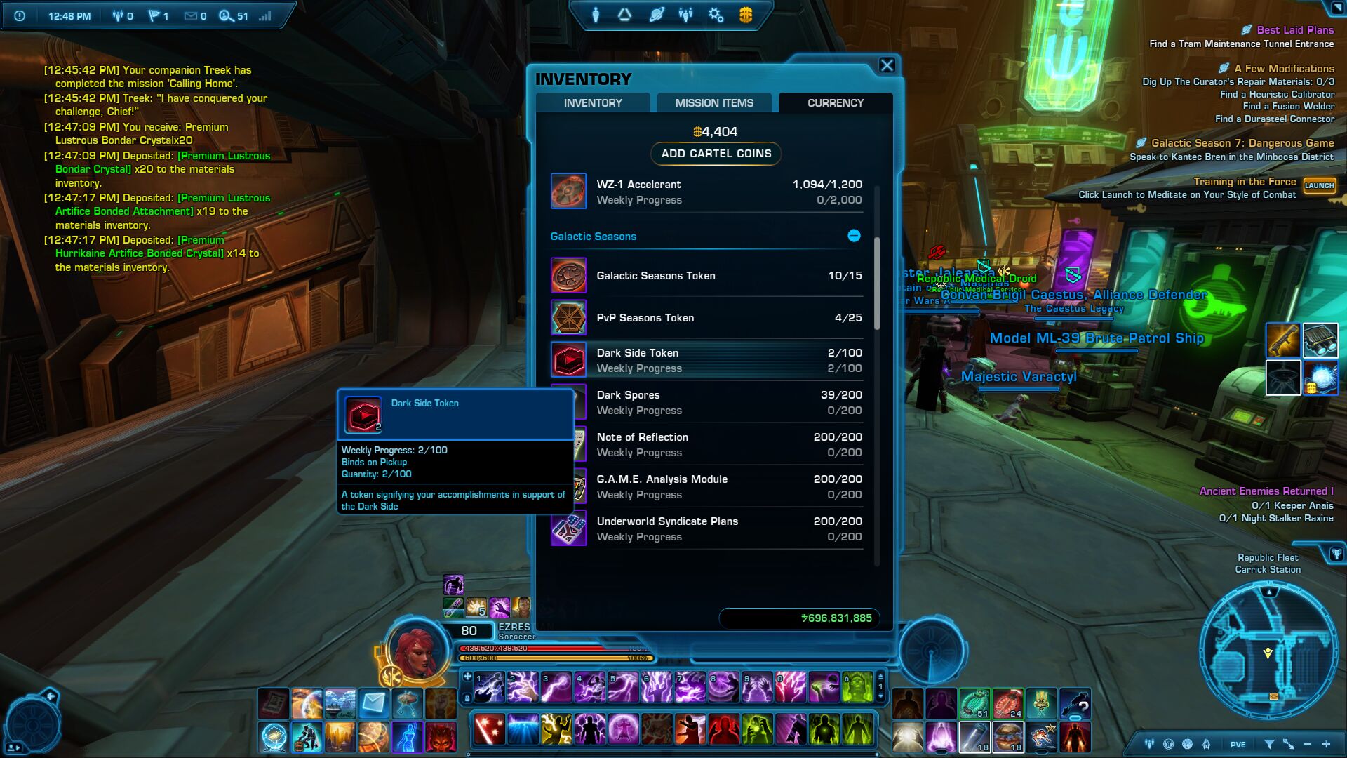 gunji #59934 A korábbi DvL eventnél lehetett választani light side és dark side között, ilyen tokent és alignmenthez pontot (50 v. 100) is adott. Nézd meg majd kérlek, hogy az alignment is változott-e, mutat-e setét pontot (a gear oldalon). -