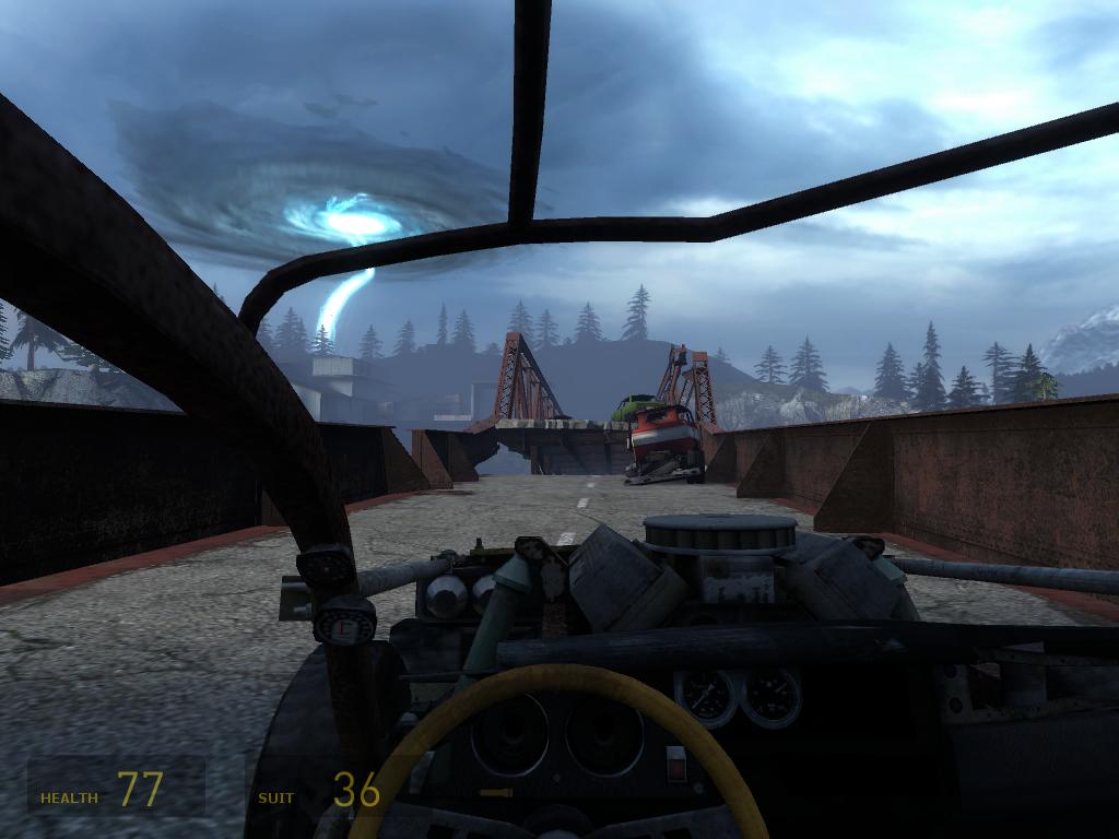 SPOILER! Kattints ide a szöveg elolvasásához!A másik hídrészre gyalog átugrani, a túlsó végén lévő autóroncsokat gravifegyverrel lehajigálni, minek következtében a hídrész libikóka módjára átbillen.Vissza az autóba és jííháááá... -