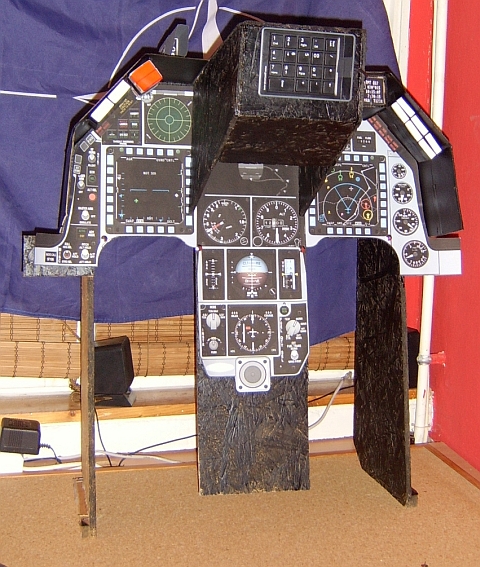 Lesz majd mögé monitor. Ez lesz a következő beruházásom. Ha ez meg van akkor kivágom a műszerfalon a műszerek "kukucska" helyét. MFD-k, RWR, DED, Üza fogyasztás, műhorizon, és talán a magasság és sebességmérőt lehet majd látni. Az utolsó kettő a monitor méretétől függ.