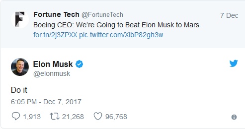 Boeing CEO: Le fogjuk verni a SpaceX-et a Marson (ie.: előbb küldenek embert a Marsra).