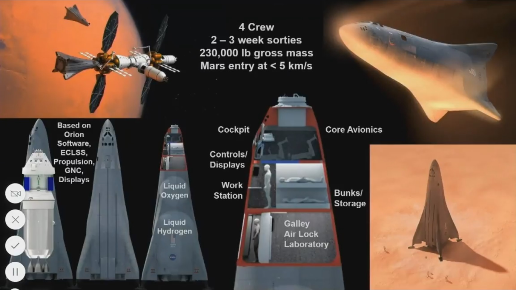 A Mars felszínén 2-3 hetet tölthet a leszállóegység. A LOX-LH2 azt jelenti, hogy nem csatlakoztak a metánt használó hajtómű-megoldásokhoz (olvasd: Blue Origin és SpaceX), illetve a Mars felszínén való üzemanyag-gyártást sem tartják valószínűnek. Ellenben a Hold vízjegének felhasználását reálisnak tartják, ahogy a Lander Holdon való használatát is. Igaz annyit megjegyeztek, hogy az aerodinamikai elemeket el lehet hagyni, tömeget megtakarítva így.