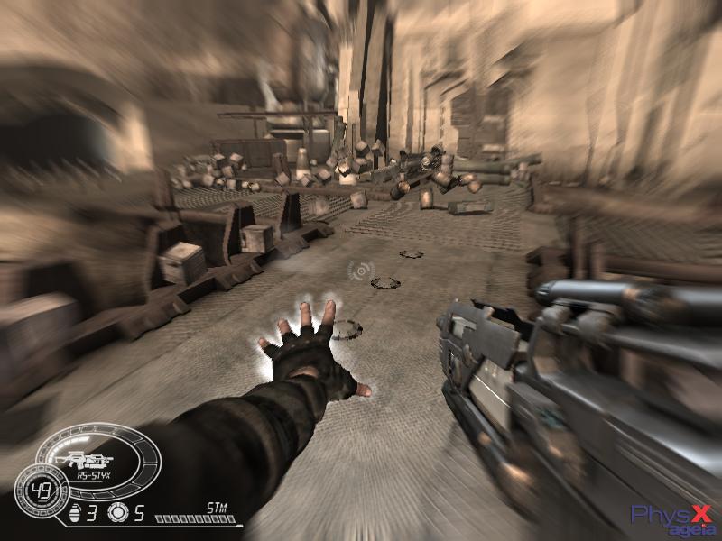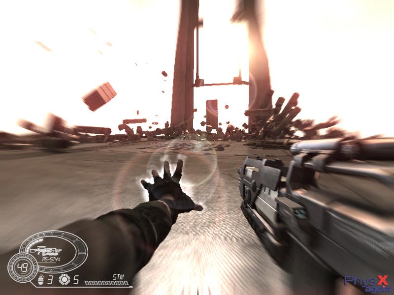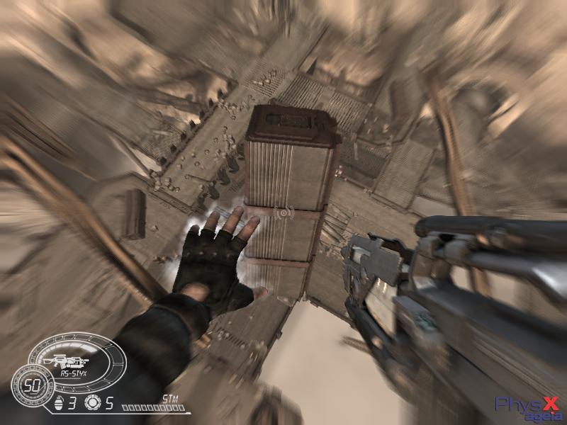 Ha csak ugy gyalogolok ide-oda akkor kb 5-7 fps lehet,de ha valahova beküldök egy gránátot,na akkor megáll a kép,kicsit gondolkodik a masina hogy akkor ezt hogy is kéne megjeleniteni,aztán szál minden szerte szét.Persze a low graphics verziót inditva,a high-ot meg se próbálom.Talán mire 2007 végén megjelenik,addigra ezt optimalizálják jobban,meg a gépek is felfejlődnek hozzá,aztán akkor jó lesz.Mert normális sebességel játszva nagyon élvezetes lehet,ilyen fizika mellett.
