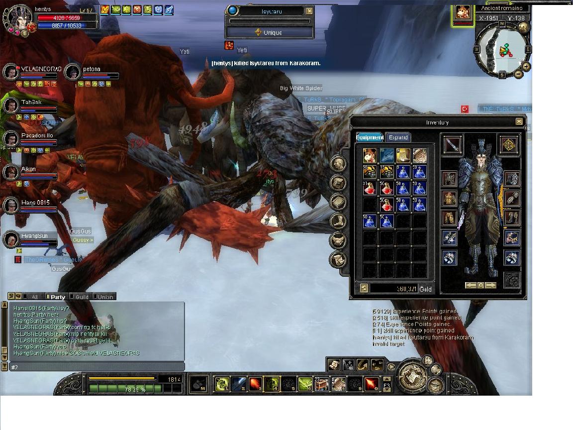 hát, mai 180 perc scrollomból 8, azaz nyolc, tehát kerek nyolcas percet játszottam le, mert remekül laggolt... utána kisértem 2 66os traders 2-2*al, npc-k rámjöttek, a laggba vlaó kattintásokkal (idegesség rulzz, nyomkod az ember ienkor egérrel 200al) és a hp potit kihuztam a slotból és sikeresen meghaltam tőlük... ugyhogy nagyon laggos a szerver :S