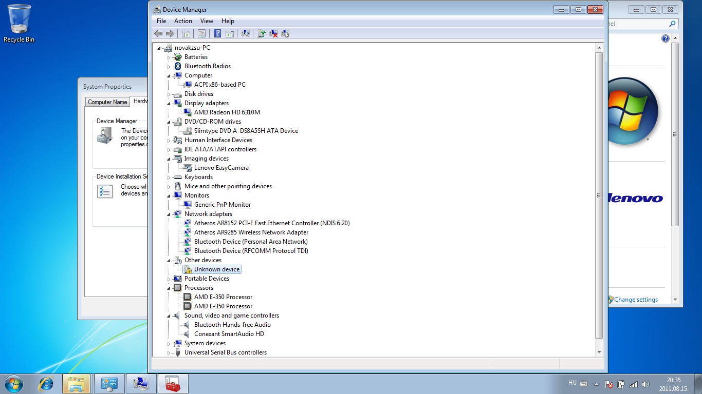 Orionk #38786 Win7 alatt mi lehet a DeviceManager-ben ez az ismeretlen eszköz?