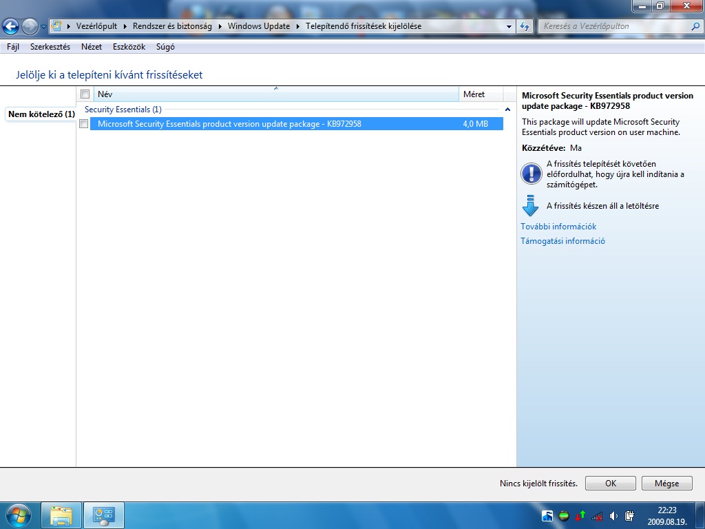 No, éppen most beszéltünk a vírusnyalogatokról, erre beesik egy MS MSE frissítése. De nem definíciós adatbázis, hanem Product Version Update.