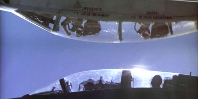 Még azt tudom elképzelni, hogy amit olvastam (valamelyik mozibakik oldalon), az egy félreértésen alapul, mivel az itt beszúrt képen látható jelenetnél alul valószinüleg a felvételnél valójában az F-14-es pilótafülkéje volt, tehát a képet tükrözték. Lehet, hogy ebből gondolta azt az illető, hogy a felvételnél az F-5-ös volt fejjel lefele. Én inkább arra hajlok, hogy ez a bizonyos felvétel valószinüleg nem is valódi, repülés közbeni gépekkel lett leforgatva, vagy pedig a két rendesen repülő gépről készült felvételeket utólag montirozták egymásra, tehát amit írtam, valóban tévedés lehet. Hamu a fejemre. :\ -