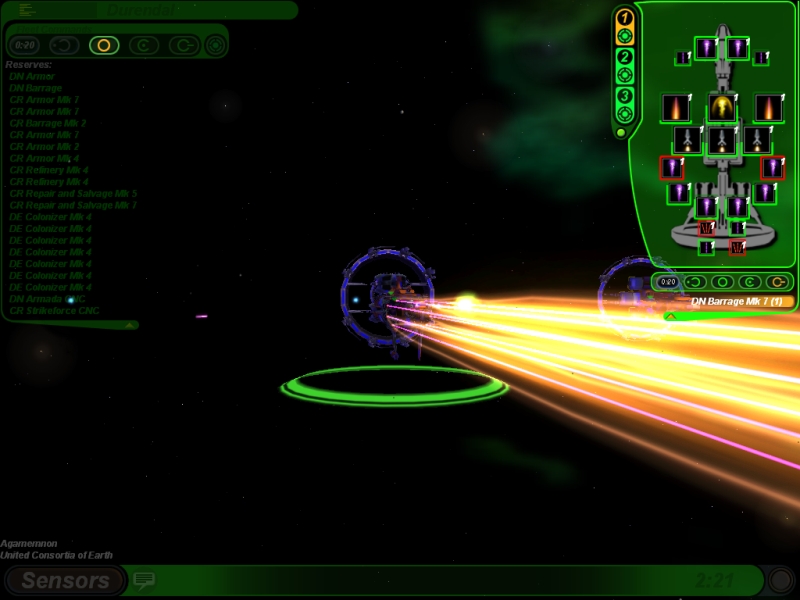 A loading képernyõn töltött várakozás hossza nemigen arányos a csata bonyolultságával. Volt, hogy az ellenségnek vagy tízféle hajója volt, nekem is vagy háromféle, és igen gyorsan betöltött. Meg olyan is volt, hogy mentem csillagrombolni, SD+CnC, ellenségnek 10 kis platform, meg 10 nagy, összesen 4 féle hajó, és öt percet bámulam a csíkot.
