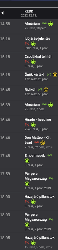 Hmm, a médiaklikken vissza lehet tekerni 12.13.-ra, de csak azokat a műsorokat lehet visszanézni ahol a zöld jel van.