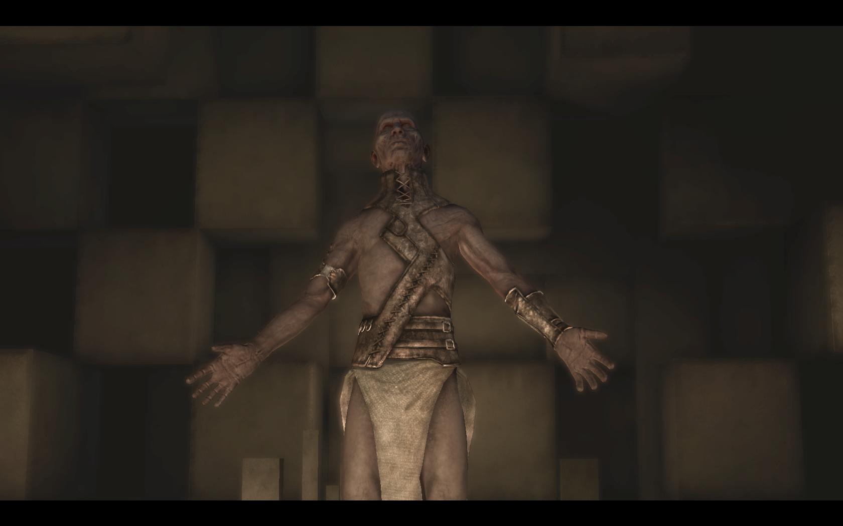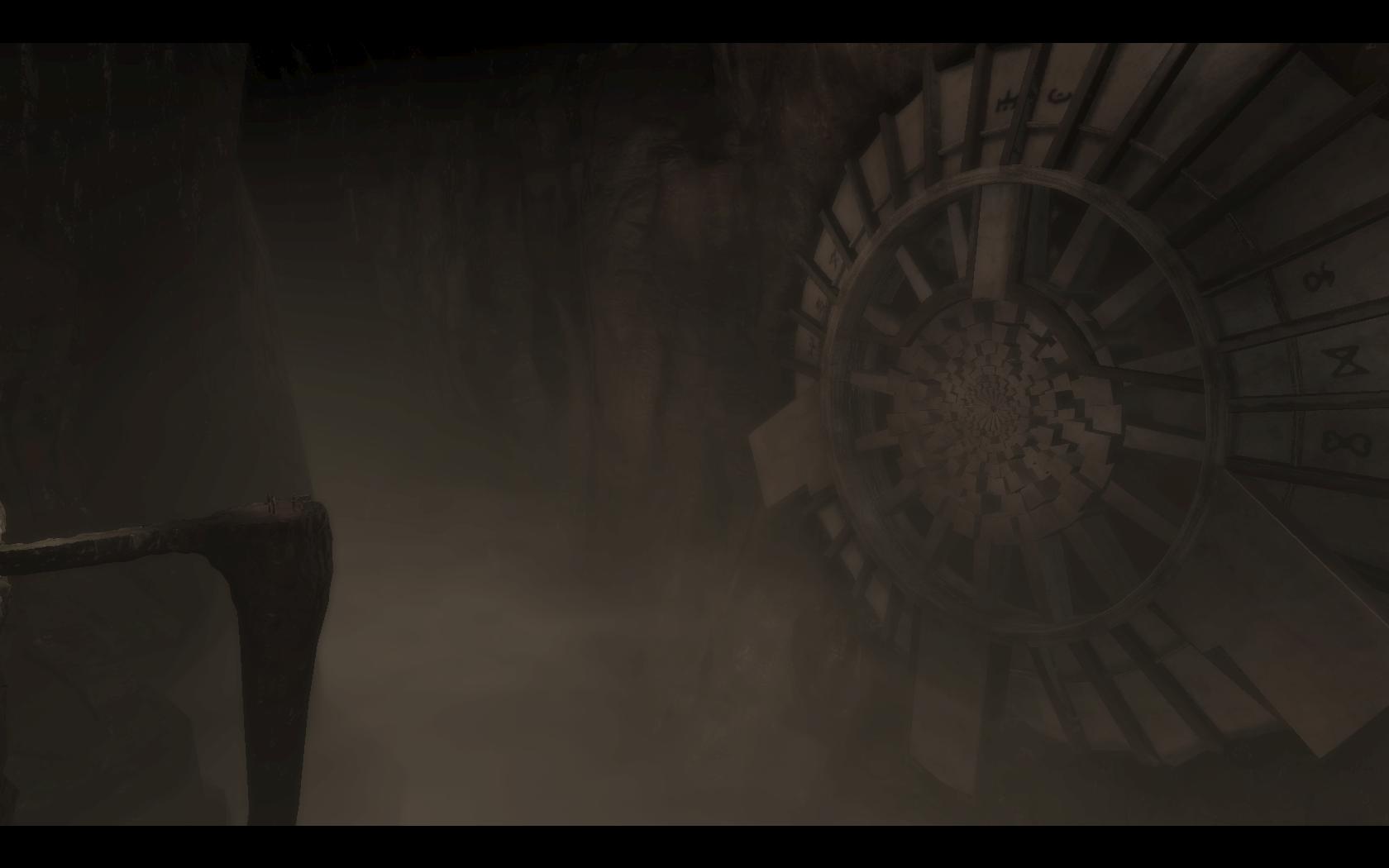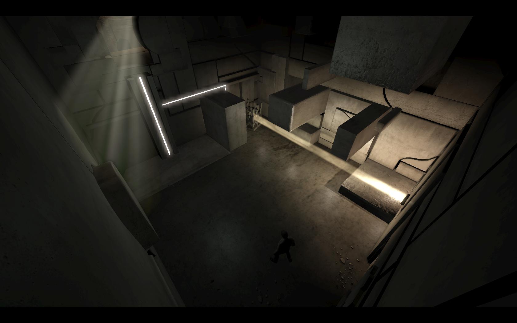 Jobbra a fény nyaláb végén van egy kocka ha azt elhuzod akkor átrendeződnek a kövek. Jobbra van egy vizszintesen kiálló kő, azzal szembe told be a kockát aztán fuss gyorsan balra ( amelyik leereszkedett ), állj rá, közbe a falból kijön a kő az eltolja a kockát amin állsz pedig felemelkedik.