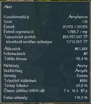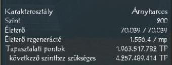 Életpont, páncél is elég sok, jó a kitérési esélyem, és a varázslat- sebzés ellenállás, kb. 40-es szint óta egy életerőt visszaadó italt sem kellett innom.