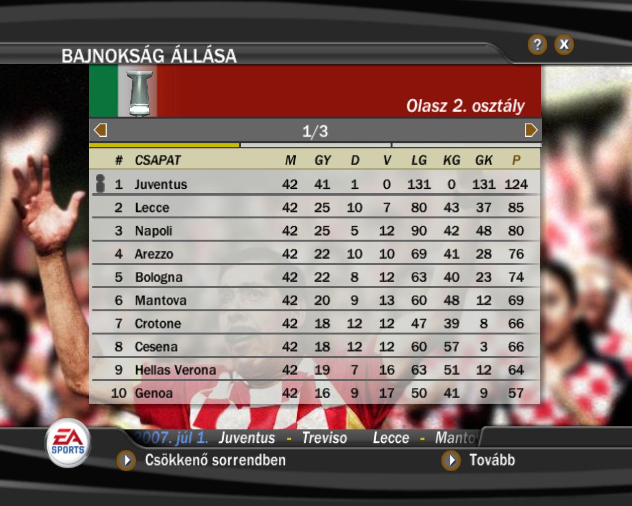nah hogy fifarol is legyen szó.Mondtam hogy elkezdtem a Juventussal a menedzsermódot.Nos most letoltam a 7 bajnokit,és egy kis képet gondoltam berakok hogy hogy is állok.(world class és 2*4 percesbe nyomom).