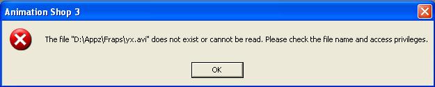 Sziasztok!Ezt irja ki az Animation Shop 3 miután megnyitom a frapsal felvett videot.Mi a gond valaki? légyszi segítsetek! -
