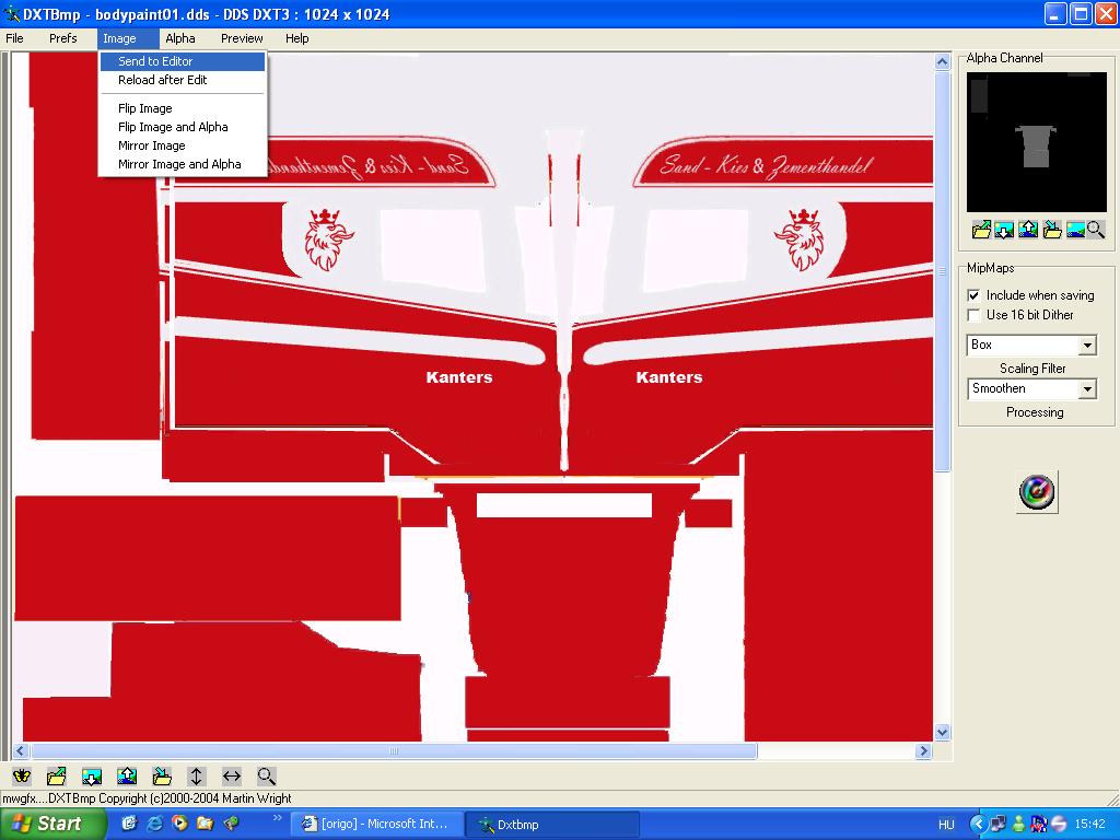 .scs-be semmit se kell konvertálni, az egy sima zipfájl 0 tömörítéssel, megkeresed benne a .dds fájlt ami a skin képét tartalmazza, ezt megnyitod a már említett programmal (vagy bármi mással ami kezeli a .dds-t) megcsinálod, elmented, vissza az .scs-be és kész.