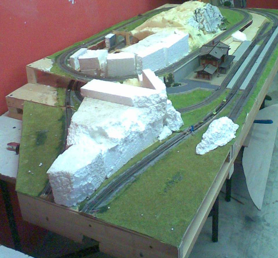 Én a rétegelt lemezt javasolnám, egy keretet, kereszt merevítőkkel, és csak a sínek illetve az épületek alá réteges lemez betéteket. A többi helyre lépés álló hab anyagot, dróthálós rögzítéssel (Styrofom vagy mi a neve, építkezésen használják, kék színű). Ez által kőnyű lesz a súlya.