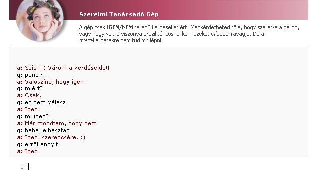 Vlala #7 Érdekes. Depresszionistáknak mindenképpen, önbizalmat ad. Bár a válaszológépet nem nehéz kiakasztani, kétféleképpen kérdezek valamit, és önmagának mond ellent. -