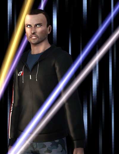Ő John Shepard karaktere a Mass Effectből a Sims 3-ban.