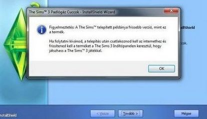 Amikor a Leszáll az éjt szeretném telepíteni, akkor kijön 1 kis ablak, hogy a Sims 3 alapjáték frissítése. OK gombra kattintok, és hibával abbahagyja a telepítést.