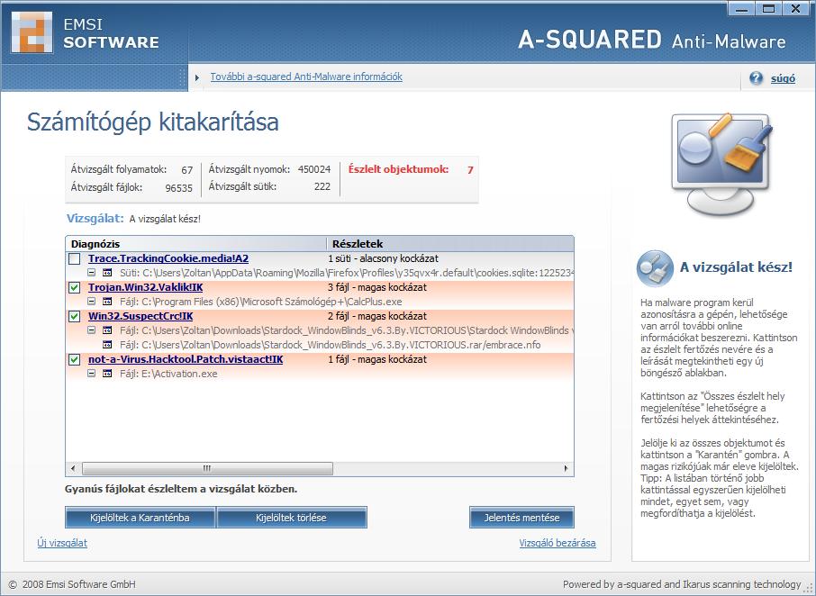 Nem kell hozzá gratulálni. Egyik se kártevő. A-squared-et bármilyen gépre rakod mindenhol talál valami spyware-t. Nálam szintén a windowsos számológépet titulálta vírusnak... -